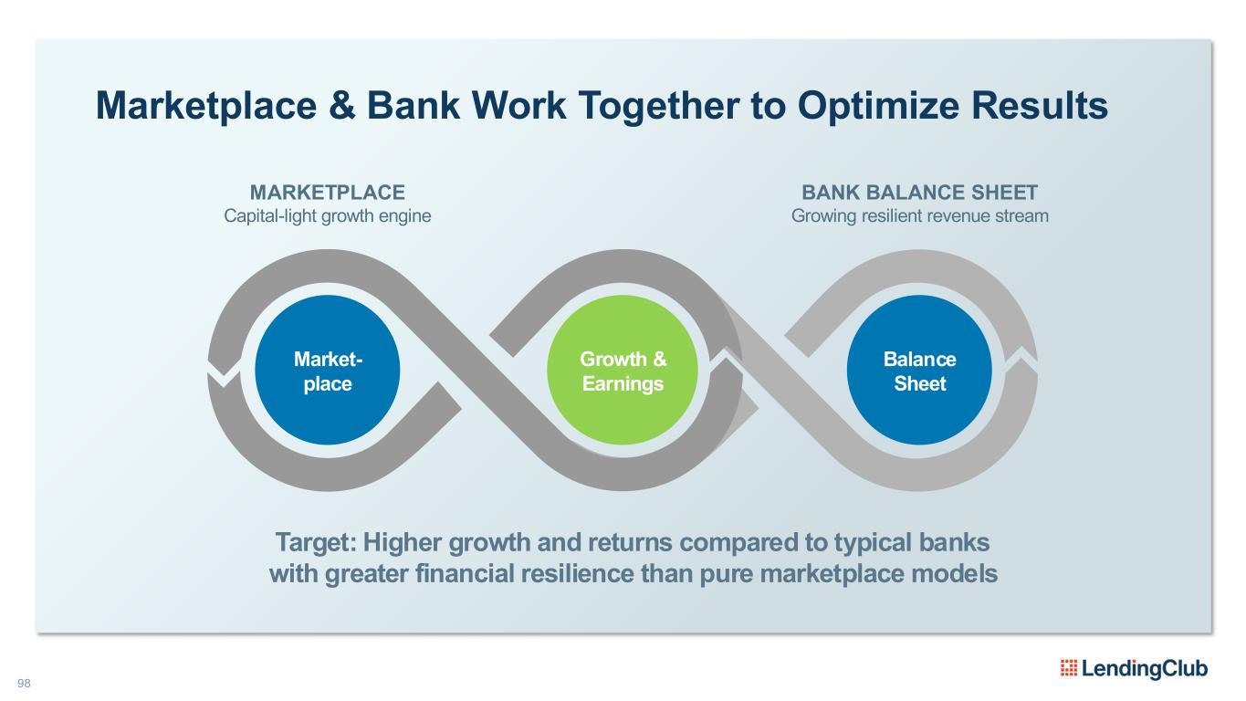 98 Marketplace & Bank Work Together to Optimize Results Market- place Balance Sheet Growth & Earnings Target: Higher growth and returns compared to typical banks with greater financial resilience than pure marketplace models MARKETPLACE Capital-light growth engine BANK BALANCE SHEET Growing resilient revenue stream