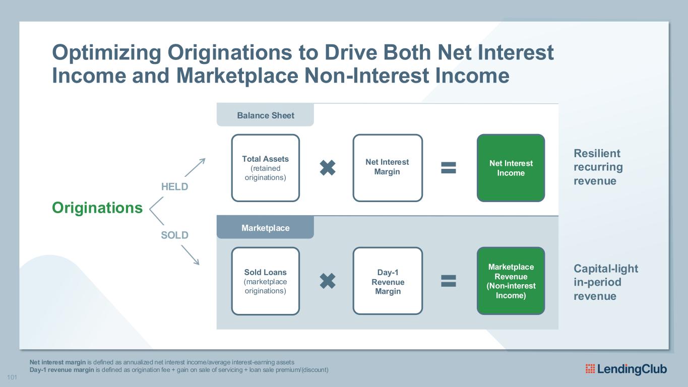 Balance Sheet Marketplace Total Assets (retained originations) Sold Loans (marketplace originations) Day-1 Revenue Margin Marketplace Revenue (Non-interest Income) Net Interest Income Net Interest Margin Net interest margin is defined as annualized net interest income/average interest-earning assets Day-1 revenue margin is defined as origination fee + gain on sale of servicing + loan sale premium/(discount) Optimizing Originations to Drive Both Net Interest Income and Marketplace Non-Interest Income HELD SOLD Originations Resilient recurring revenue Capital-light in-period revenue 101