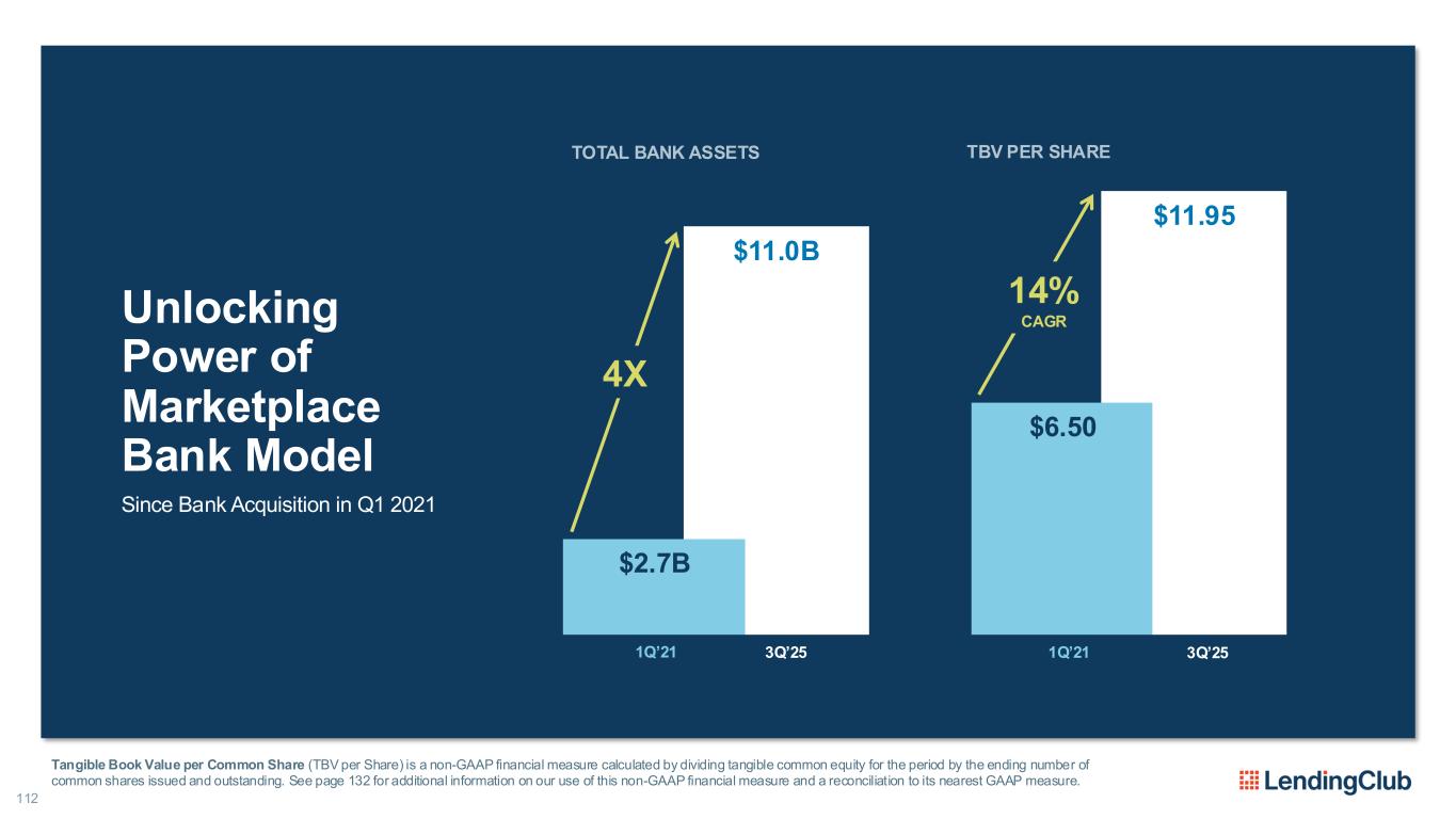$11.0B $11.95 $2.7B $6.50 112 Unlocking Power of Marketplace Bank Model Since Bank Acquisition in Q1 2021 1Q’21 3Q’251Q’21 3Q’25 14% CAGR 4X TBV PER SHARETOTAL BANK ASSETS Tangible Book Value per Common Share (TBV per Share) is a non-GAAP financial measure calculated by dividing tangible common equity for the period by the ending number of common shares issued and outstanding. See page 132 for additional information on our use of this non-GAAP financial measure and a reconciliation to its nearest GAAP measure.