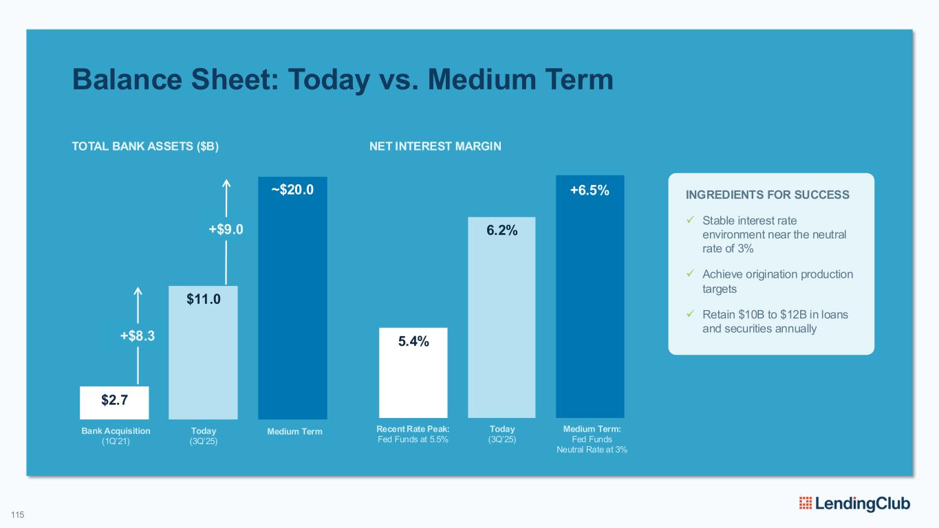 5.4% 6.2% 115 Balance Sheet: Today vs. Medium Term INGREDIENTS FOR SUCCESS ✓ Stable interest rate environment near the neutral rate of 3% ✓ Achieve origination production targets ✓ Retain $10B to $12B in loans and securities annually $2.7 $11.0 ~$20.0 TOTAL BANK ASSETS ($B) +6.5% +$8.3 +$9.0 NET INTEREST MARGIN Recent Rate Peak: Fed Funds at 5.5% Today (3Q’25) Medium Term: Fed Funds Neutral Rate at 3% Bank Acquisition (1Q’21) Today (3Q’25) Medium Term