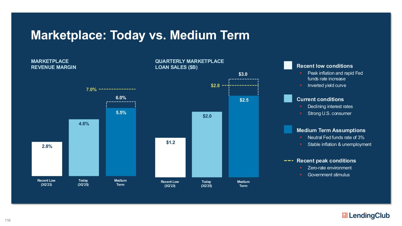 6.0% 5.5% Medium Term $3.0 $2.5 Medium Term 7.0% $2.8 116 Marketplace: Today vs. Medium Term QUARTERLY MARKETPLACE LOAN SALES ($B) MARKETPLACE REVENUE MARGIN Recent low conditions ▪ Peak inflation and rapid Fed funds rate increase ▪ Inverted yield curve Current conditions ▪ Declining interest rates ▪ Strong U.S. consumer 2.8% Recent Low (3Q’23) 4.6% Today (3Q’25) $1.2 Recent Low (3Q’23) $2.0 Today (3Q’25) Recent peak conditions ▪ Zero-rate environment ▪ Government stimulus Medium Term Assumptions ▪ Neutral Fed funds rate of 3% ▪ Stable inflation & unemployment
