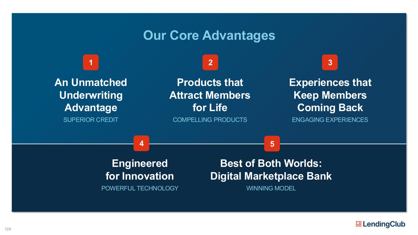 129 Our Core Advantages An Unmatched Underwriting Advantage SUPERIOR CREDIT 1 Products that Attract Members for Life COMPELLING PRODUCTS 2 Experiences that Keep Members Coming Back ENGAGING EXPERIENCES 3 Best of Both Worlds: Digital Marketplace Bank WINNING MODEL 5 Engineered for Innovation POWERFUL TECHNOLOGY 4