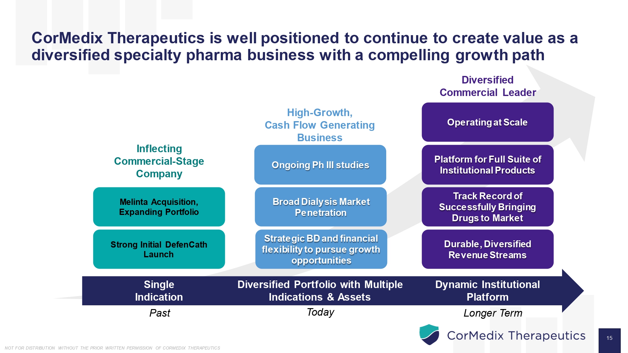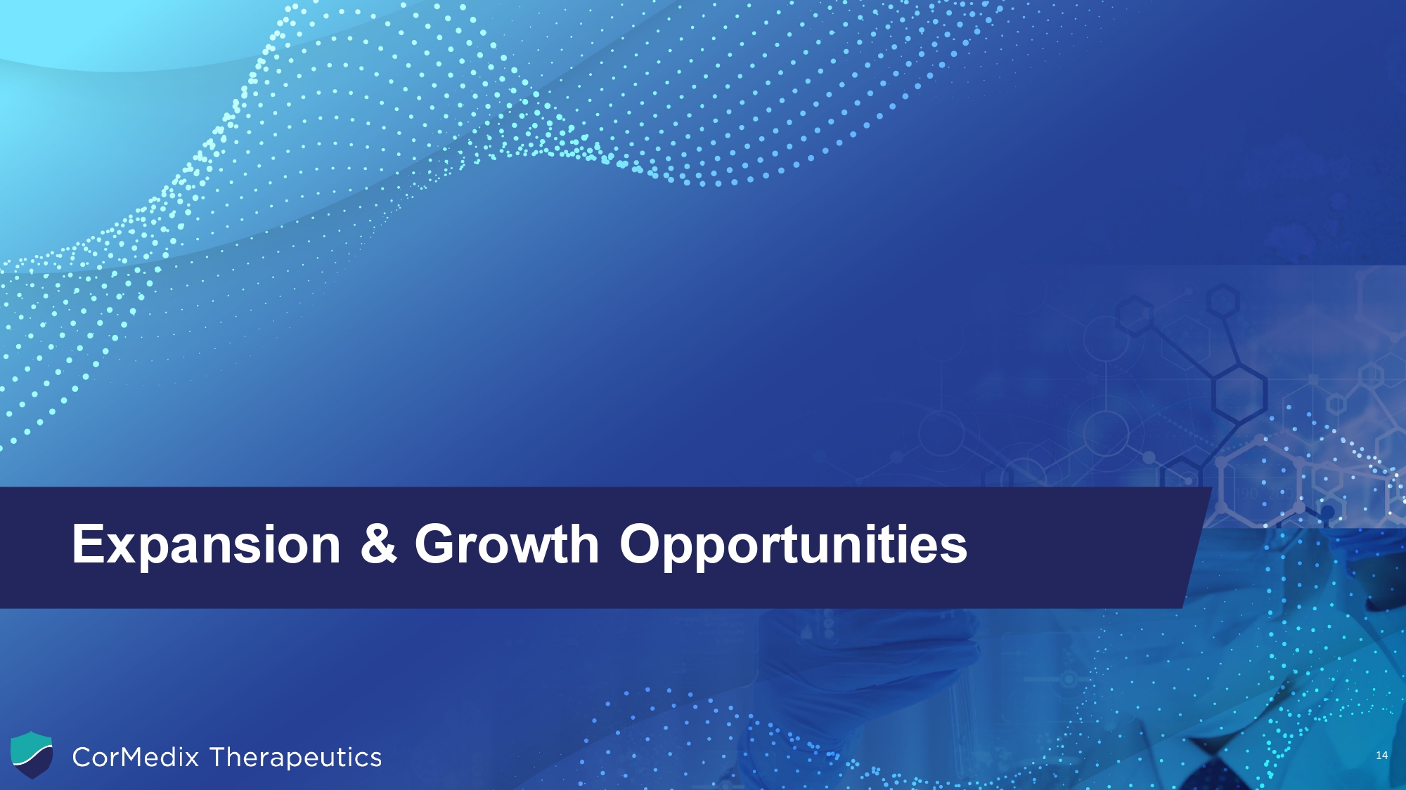 NOT FOR DISTRIBUTION WITHOUT THE PRIOR WRITTEN PERMISSION OF CORMEDIX THERAPEUTICS Expansion & Growth Opportunities 14