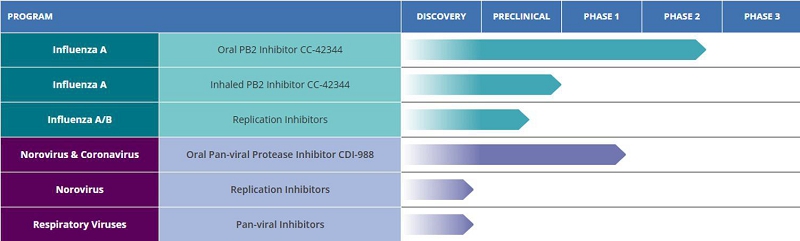 We received authorization from the United Kingdom Medicines and Healthcare Products Regulatory Agency (MHRA) to conduct a Phase 2a human challenge study with oral CC-42344 as a potential treatment for pandemic and seasonal influenza A. This randomized, double-blind, placebo-controlled study is designed to evaluate the safety, tolerability, viral and clinical measurements of influenza A infection in subjects dosed with oral CC-42344 treatment. In May 2024 we announced completion of enrollment of 78 subjects. In December 2024, the Company announced plans to extend enrollment for the oral CDI-42344 Phase 2a study due to unexpectedly low influenza infection among study participants. Specifically, management determined that an extension of the study is necessary due to low infectivity rate of the challenge influenza strain used in this study, as the establishment of robust influenza infection in healthy, uninfected study subjects is critical to determine clinical endpoints for evaluating antiviral molecule, and the low infectivity obtained in this study hindered antiviral data analysis. The Company is currently in continuing discussions with the clinical research organization to address this study and determine a course forward with respect thereto, including potentially by preparing a protocol amendment or a resubmission for approval by the United Kingdom Medicines and Healthcare Products Regulatory Agency (“MHRA”) in order to seek enrollment to study and to ensure necessary infection rates among enrolled study subjects in the study. CC-42344 has demonstrated favorable safety and tolerability profile from the Phase 2a study to date, with no SAEs and no drug-related discontinuations by study participants.