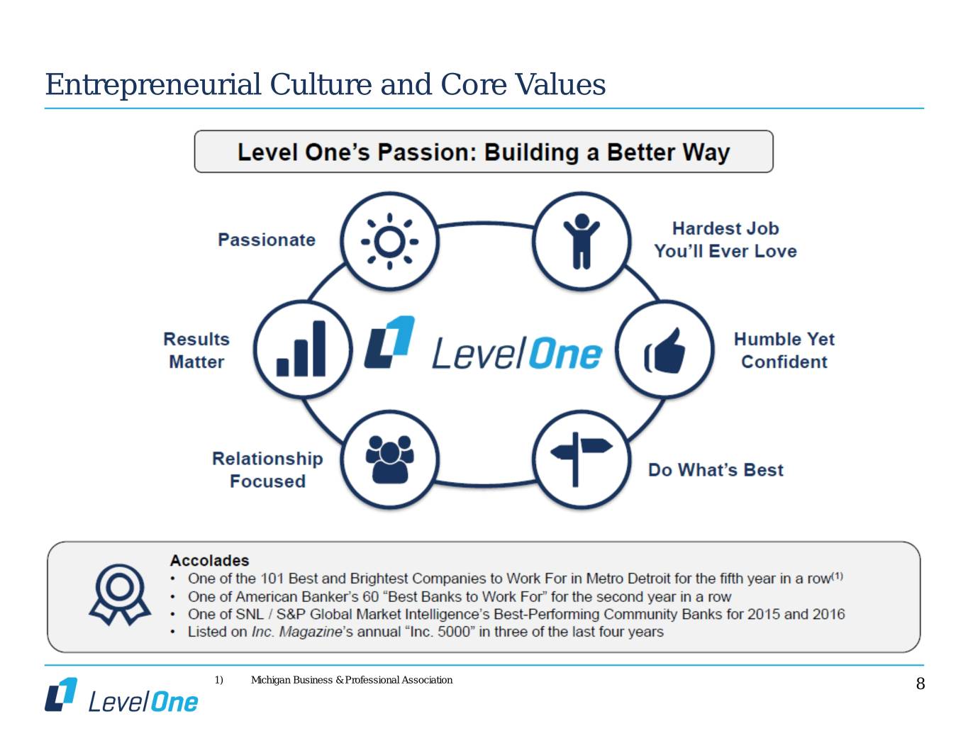 Entrepreneurial Culture and Core Values 1) Michigan Business & Professional Association 8