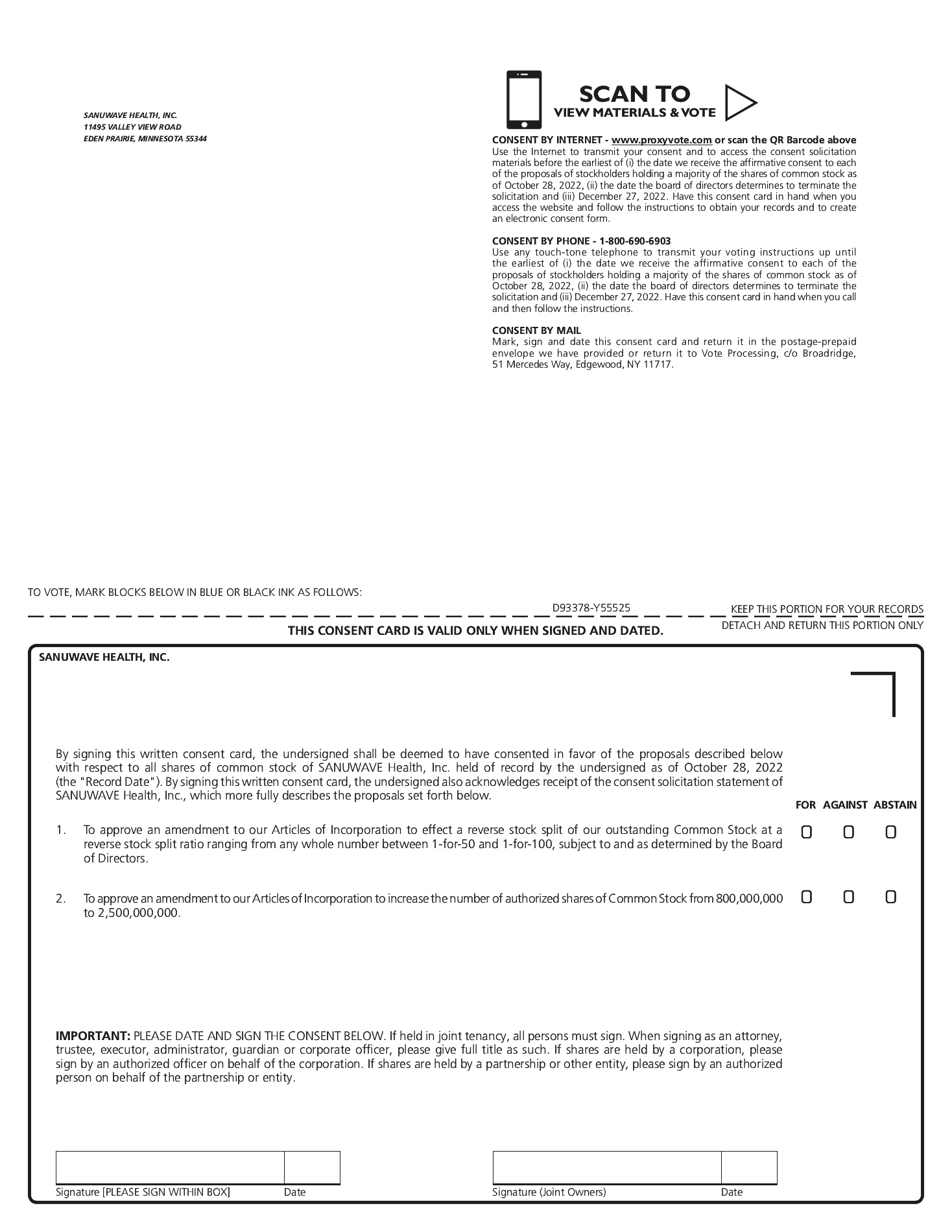 On the Record Date, we had 548,737,651 shares of Common Stock issued and outstanding and 251,262,349 shares of Common Stock that were authorized but unissued. Also on the Record Date, we had (i) 1,006,490,519 shares of Common Stock potentially issuable upon exercise of outstanding warrants, (ii) 21,246,085 shares of Common Stock potentially issuable upon exercise of outstanding stock options and (iii) 472,614,142 shares of Common Stock potentially issuable upon the conversion of outstanding convertible notes. Accordingly, we need to increase our authorized shares of Common Stock in order to permit the exercise or conversion of all such exercisable or convertible securities. The Notes and the Warrants are not currently convertible into, or exercisable for, shares of our Common Stock. The Notes will be convertible and the Warrants exercisable at such time as our authorized and unissued shares of Common Stock are at a number sufficient to permit the exercise or conversion of all outstanding securities exercisable for, or convertible into, Common Stock.
