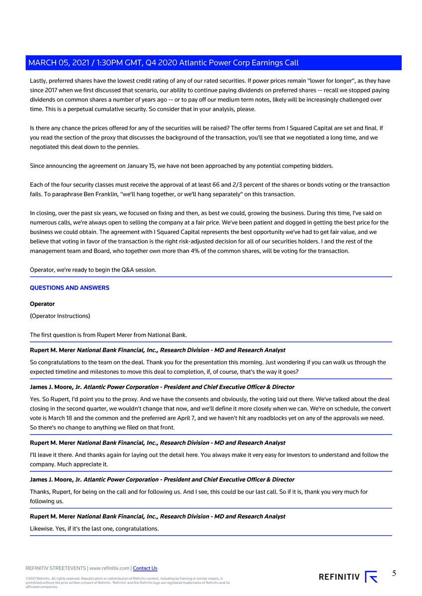 MARCH 05, 2021 / 1:30PM GMT, Q4 2020 Atlantic Power Corp Earnings CallCORPORATE PARTICIPANTS James J. Moore, Jr. Atlantic Power Corporation