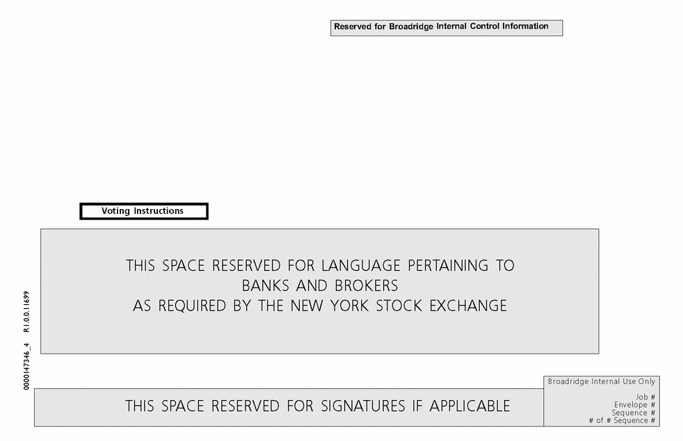 THIS SPACE RESERVED FOR LANGUAGE PERTAINING TO BANKS AND BROKERS AS REQUIRED BY THE NEW YORK STOCK EXCHANGE Voting Instructions THIS SPACE RESERVED FOR SIGNATURES IF APPLICABLE Broadridge Internal Use Only Job # Envelope # Sequence # # of # Sequence # Reserved for Broadridge Internal Control Information 0000147346_4 R1.0.0.11699 |