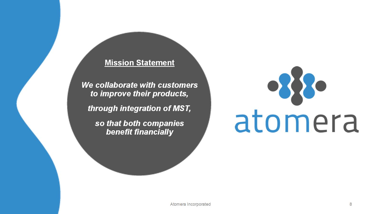 We collaborate with customers to improve their products, through integration of MST, so that both companies benefit financially Mission Statement Atomera Incorporated 8