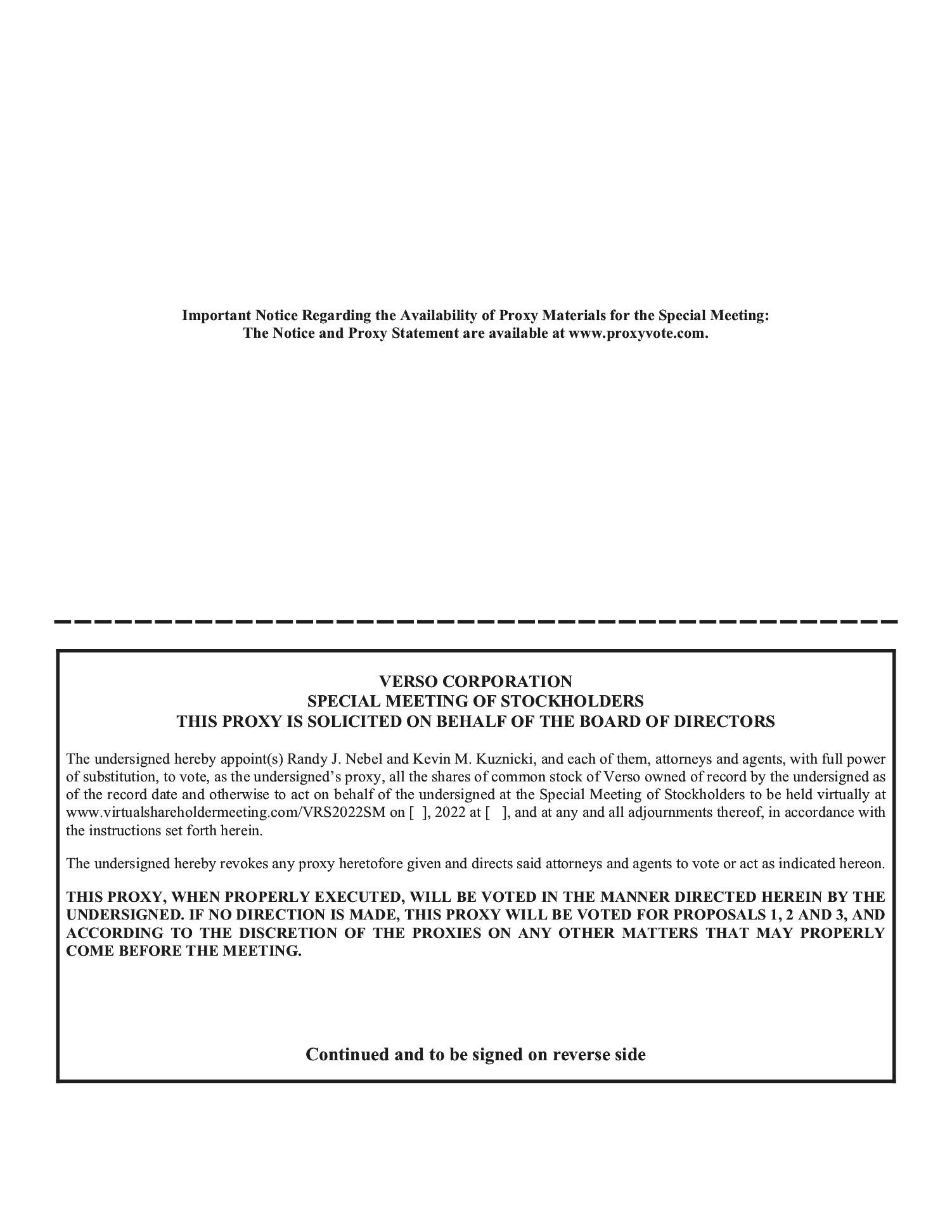 | | | | | Class A common stock, par value $0.01 per share (the “common stock”), of Verso Corporation (the “Company”) | ||