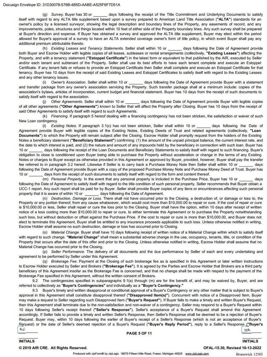 5. Liquidated Damages: The liquidated damages amount referenced in Section 21 of the Agreement consists of the deposit amounts referenced in Section 4.1 and 4.2(b) of the Agreement.
