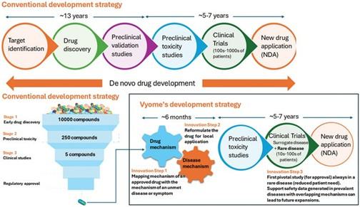 Vyome Biosciences Private Limited (“VBPL”) was co-founded in New Delhi, India by Dr. Shiladitya Sengupta, a professor of medicine and of health sciences and technology at Harvard Medical School and Massachusetts Institute of Technology, Dr. Rajesh Gokhale, an immunologist at the National Institute of Immunology in New Delhi and the current secretary of the Department of Biotechnology of the Government of India, and Venkat Nelabhotla, an alumnus of Indian Institute of Management, Ahmedabad. He worked as CEO & Executive Director of Emami Ltd and as Senior Vice President of Aurobindo Pharma Limited. The vision of VBPL was to foster innovation in medical drug development for global impact in a cost-efficient manner by leveraging the best of talents in the US-India corridor. India had made significant strides in the information technology space, and our founders believed that the ecosystem was ripe to pioneer a similar leap-frogging in the bio-technology and healthcare space.