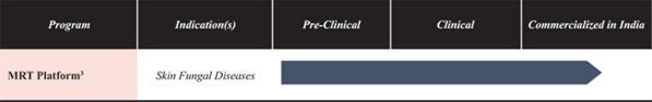 | ● | Molecular Replacement Therapy — Our innovation engine has also generated a molecular replacement therapy (“MRT”) platform, with the potential of improving the efficacy of existing antifungal agents. We have signed a collaboration and license agreement with Sun Pharma Laboratories Limited (“Sun Pharma”), to develop and commercialize these next-generation antifungal products which incorporate our MRT technology. We intend to continue to leverage our existing pipeline and platform to actively explore and evaluate potential value-creating partnering opportunities. |