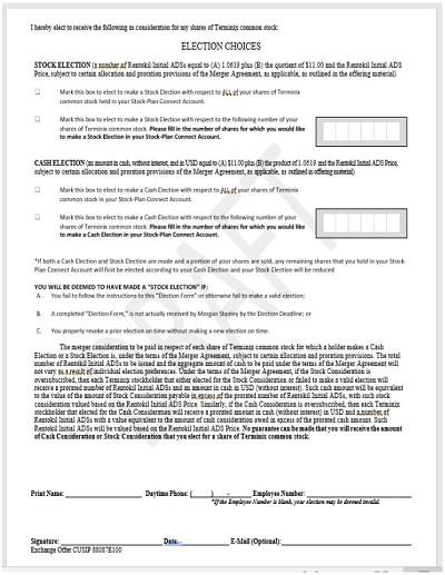 As a reminder, stock options and unvested RSUs are not part of the cash/stock election process. This is why there is not an option to elect to receive cash/stock for certain any equity awards under the Election Form. Instead, per the merger agreement and applicable equity award plan terms:
