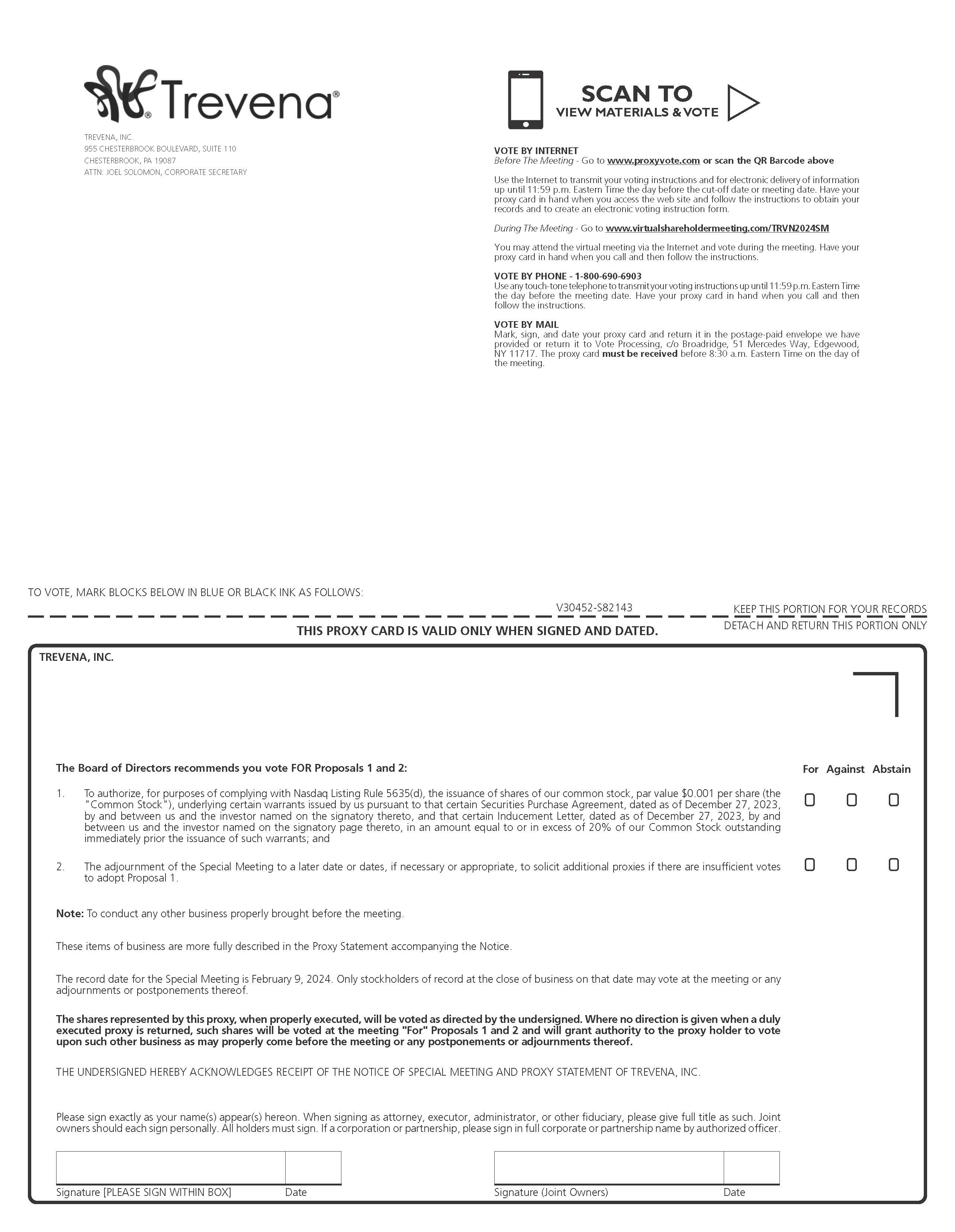 Friday, February 9, 2024. Only Trevena stockholders of record holding shares of our Common Stock at the close of business on the record date are entitled to receive this notice and vote at the Special Meeting and any adjournment or postponement of the Special Meeting.