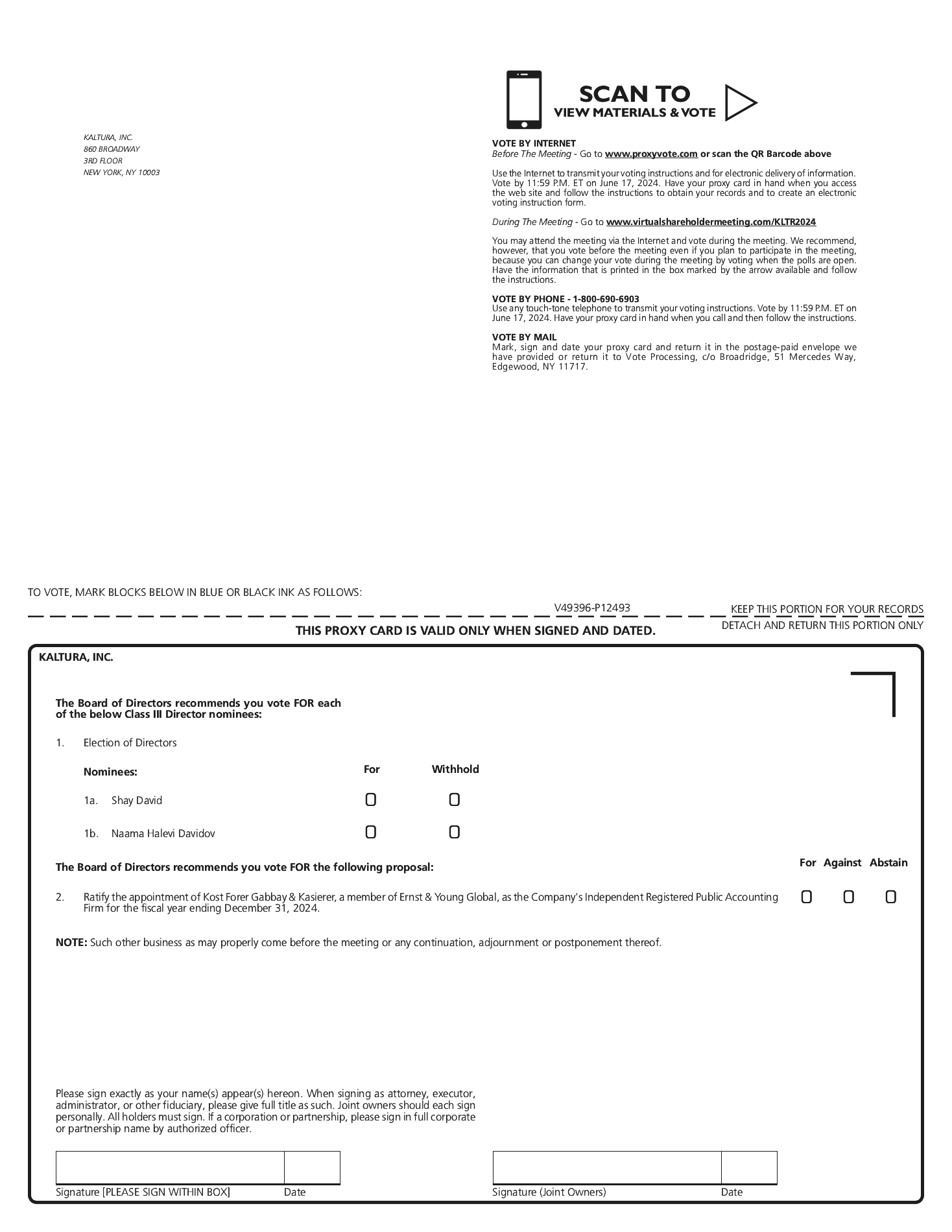 ![]() | | | The Board of Directors unanimously recommends a vote FOR the Ratification of the Appointment of Kost Forer Gabbay & Kasierer, a member of Ernst & Young Global, as our Independent Registered Public Accounting Firm for the fiscal year ending December 31, 2024. |
