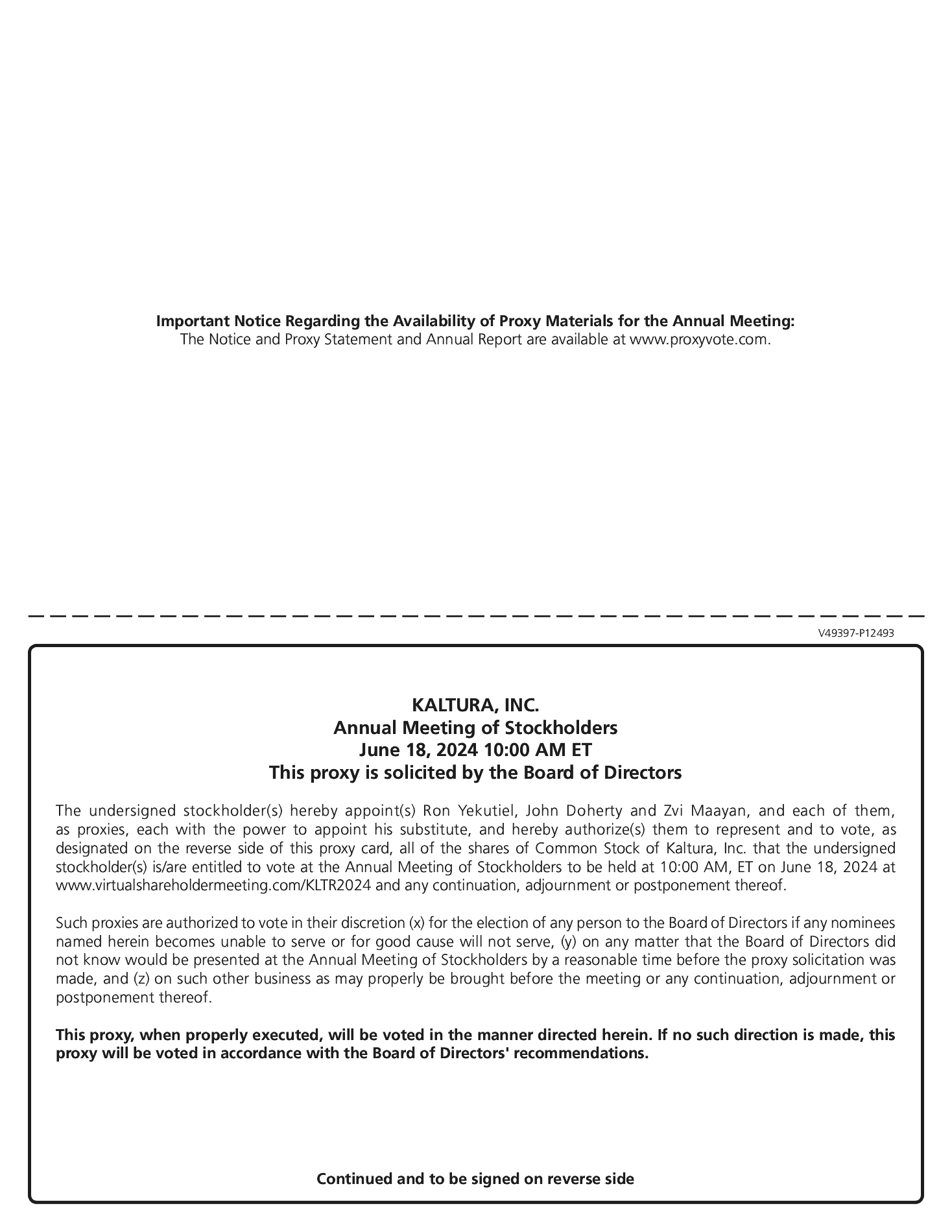 (4) | Natan Israeli has served as our Chief Customer Officer since November 2020 and as an executive officer since January 2024. Prior to joining Kaltura, throughout 2020 Mr. Israeli was the CEO for Ambar A.M. Enterprise Ltd., that was active in the Israeli energy and infrastructure industries. Prior to that Mr. Israeli served for three decades in the Israeli Air Force (IAF) as an officer and helicopter pilot. His last position was head of all IAF Human Resources from 2016 to 2020, in which capacity he was responsible for tens of thousands of people. Prior to that Mr. Israeli has held various senior positions, including the IAF's CIO and head of its information systems from 2012 to 2014. Mr. Israeli holds a Master's degree in Political Science and Government from University of Haifa and a Bachelor of Science degree in Biology from Bar-Ilan University. |