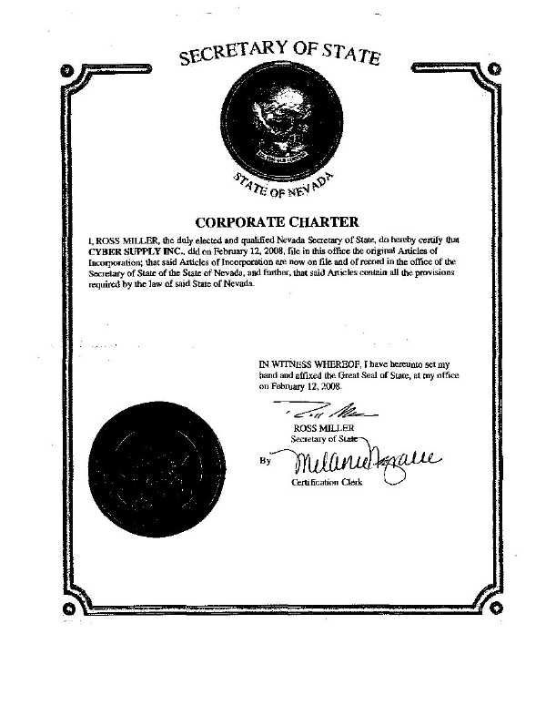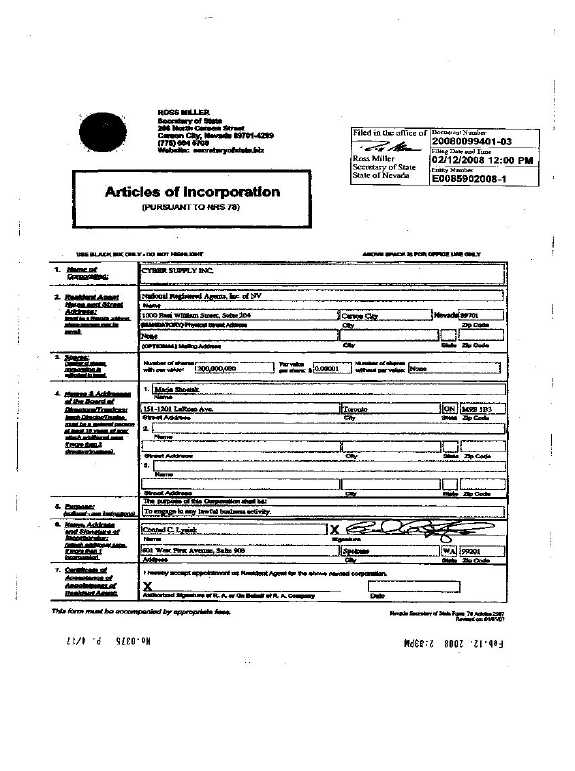 The aggregate number of shares that the Corporation will have authority to issue is Two Hundred Million (200,000,000) of which One Hundred Million (100,000,000) shares will be common stock, with a par value of $0.00001 per share, and One Hundred Million (100,000,000) shares will be preferred stock, with a par value of $0.00001 per share.