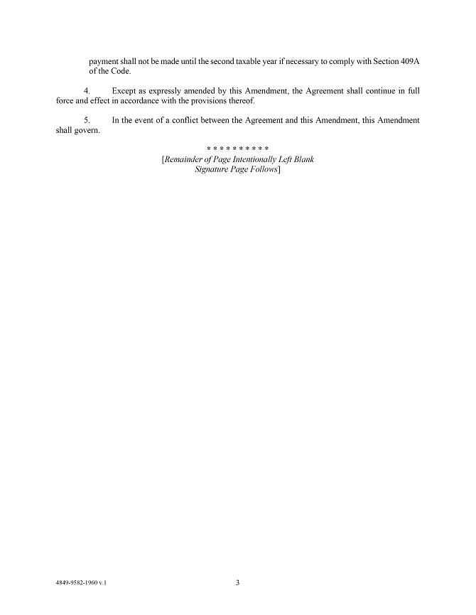 IN WITNESS WHEREOF, the parties have executed this Fourth Amendment to Amended and Restated Employment Agreement as of the Amendment Effective Date.