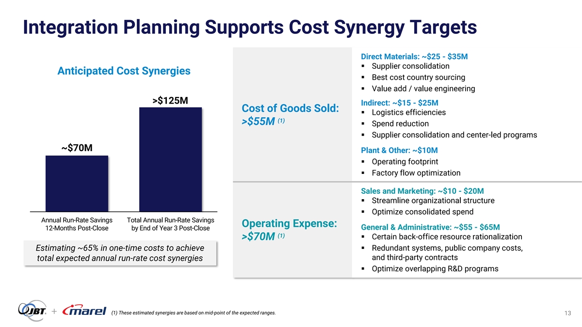 Forward-Looking and Non-GAAP Statements This presentation contains forward-looking statements as defined in the Private Securities Litigation Reform Act of 1995. Forward-looking statements are information of a non-historical nature and are subject to risks and uncertainties that are beyond JBT’s ability to control. These forward-looking statements include, among others, statements relating to our business and our results of operations, a potential transaction with Marel, our strategic plans, our restructuring plans and expected cost savings from those plans, and our liquidity. The factors that could cause our actual results to differ materially from expectations include, but are not limited to, the following factors: the occurrence of any event, change or other circumstances that could give rise to the termination or abandonment of the voluntary takeover offer to acquire all issued and outstanding shares of Marel (the “Offer”); the expected timing and likelihood of completion of the proposed transaction with Marel, including the timing, receipt and terms and conditions of any required governmental and regulatory approvals for the Offer that could reduce anticipated benefits or cause the parties to abandon the transaction; the risk that Marel and/or JBT may not be able to satisfy the conditions to the Offer in a timely manner or at all; the risk that the Offer and its announcement could have an adverse effect on the ability of JBT and Marel to retain customers and retain and hire key personnel and maintain relationships with their suppliers and customers, and on their operating results and businesses generally; the risk that problems may arise in successfully integrating the businesses of Marel and JBT, which may result in the combined company not operating as effectively and efficiently as expected; the risk that the combined company may be unable to achieve cost-cutting synergies or that it may take longer than expected to achieve those synergies; fluctuations in our financial results; unanticipated delays or accelerations in our sales cycles; deterioration of economic conditions, including impacts from supply chain delays and reduced material or component availability; inflationary pressures, including increases in energy, raw material, freight and labor costs; disruptions in the political, regulatory, economic and social conditions of the countries in which we conduct business; changes to trade regulation, quotas, duties or tariffs; fluctuations in currency exchange rates; changes in food consumption patterns; impacts of pandemic illnesses, food borne illnesses and diseases to various agricultural products; weather conditions and natural disasters; the impact of climate change and environmental protection initiatives; acts of terrorism or war, including the ongoing conflicts in Ukraine and the Middle East; termination or loss of major customer contracts and risks associated with fixed-price contracts, particularly during periods of high inflation; customer sourcing initiatives; competition and innovation in our industries; our ability to develop and introduce new or enhanced products and services and keep pace with technological developments; difficulty in developing, preserving and protecting our intellectual property or defending claims of infringement; catastrophic loss at any of our facilities and business continuity of our information systems; cyber-security risks such as network intrusion or ransomware schemes; loss of key management and other personnel; potential liability arising out of the installation or use of our systems; our ability to comply with U.S. and international laws governing our operations and industries; increases in tax liabilities; work stoppages; fluctuations in interest rates and returns on pension assets; a systemic failure of the banking system in the United States or globally impacting our customers’ financial condition and their demand for our goods and services; availability of and access to financial and other resources; the risk factors discussed in our proxy statement/prospectus filed pursuant to Rule 424(b) under the Securities Act of 1933, as amended (the “Securities Act”), on June 25, 2024 (the “Proxy Statement/Prospectus”), forming part of the Registration Statement on Form S-4 (File No. 333-279438) (the “Registration Statement”), initially filed by us on May 15, 2024 and declared effective on June 25, 2024; and other factors described under the captions “Risk Factors” and “Management’s Discussion and Analysis of Financial Condition and Results of Operations” in JBT’s most recent Annual Report on Form 10-K filed with the U.S. Securities and Exchange Commission (the “SEC”) and in any subsequently filed Quarterly Reports on Form 10-Q. JBT cautions shareholders and prospective investors that actual results may differ materially from those indicated by the forward-looking statements. JBT undertakes no obligation to publicly update or revise any forward-looking statements whether as a result of new information, future developments, subsequent events or changes in circumstances or otherwise. JBT provides non-GAAP financial measures in order to increase transparency in our operating results and trends. These non-GAAP measures eliminate certain costs or benefits from, or change the calculation of, a measure as calculated under U.S. GAAP. By eliminating these items, JBT provides a more meaningful comparison of our ongoing operating results, consistent with how management evaluates performance. Management uses these non-GAAP measures in financial and operational evaluation, planning and forecasting. These calculations may differ from similarly-titled measures used by other companies. The non-GAAP financial measures disclosed are not intended to be used as a substitute for, nor should they be considered in isolation of, financial measures prepared in accordance with U.S. GAAP. 2