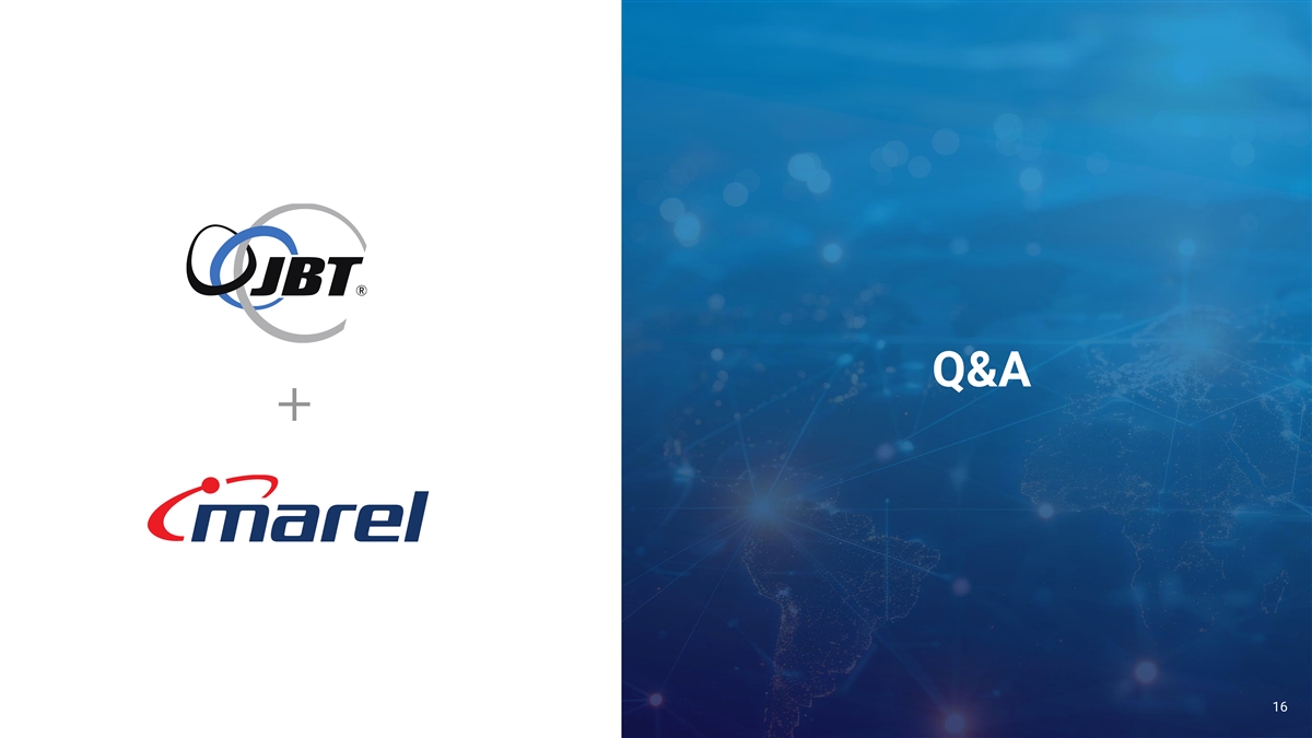 Creating a Leading Food and Beverage Technology Company with a Platform for Enhanced Value Creation Greater exposure to Deep customer Enhanced scale and Operationally focused Expecting to deliver resilient and growing relationships, greater complementary core organization with attractive returns for end markets and density of service technology enables continuous shareholders and geographies technicians, and digital improved cross-selling, improvement mindset provide meaningful offerings support aftermarket support, to drive efficiencies and upside potential customers’ uptime and innovation synergy capture 15
