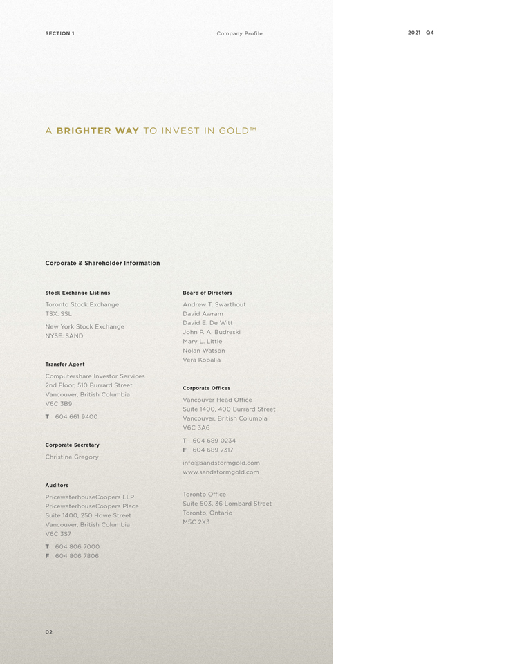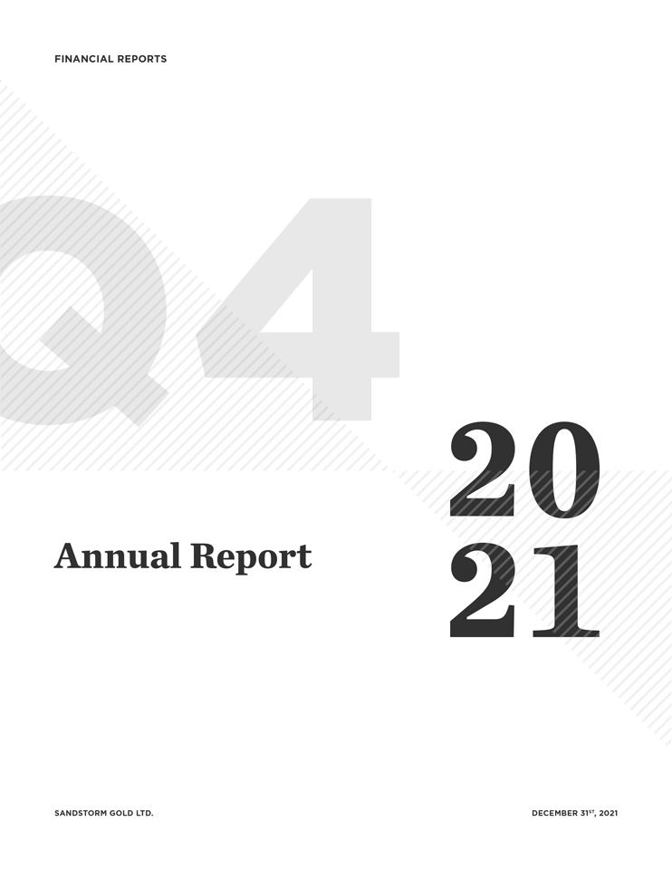 On December 15, 2021 Sandstorm declared its inaugural dividend of CAD$0.02 per share, paid on January 28, 2022 and each quarter thereafter, subject to annual increases. |