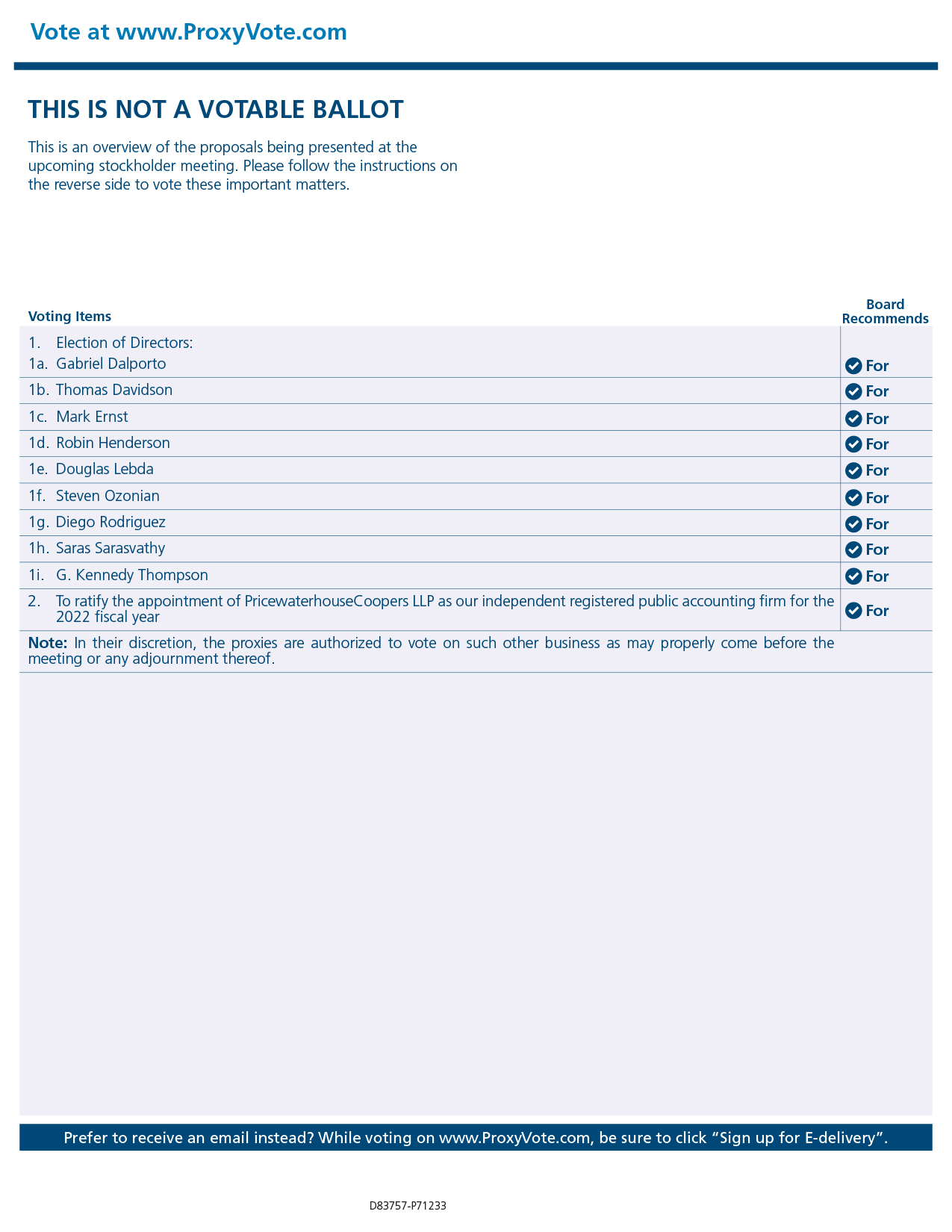 o Confidential, for Use of the Commission Only (as permitted by Rule 14a-6(e)(2))