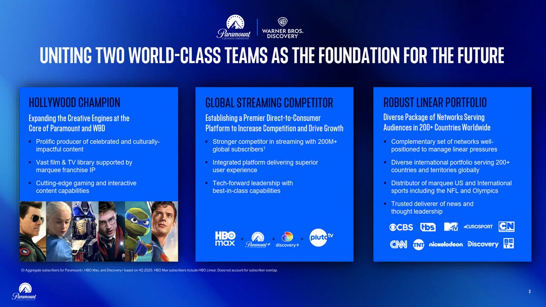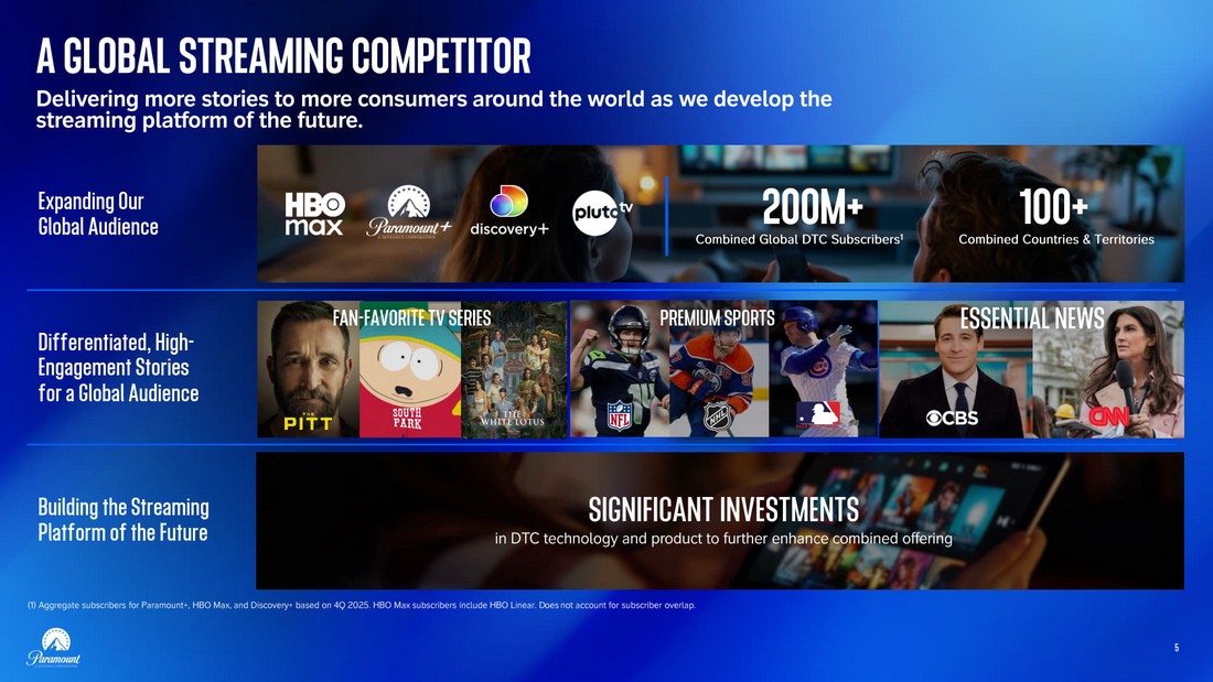 The following is an investor presentation from Paramount Skydance Corporation presented on March 2, 2026