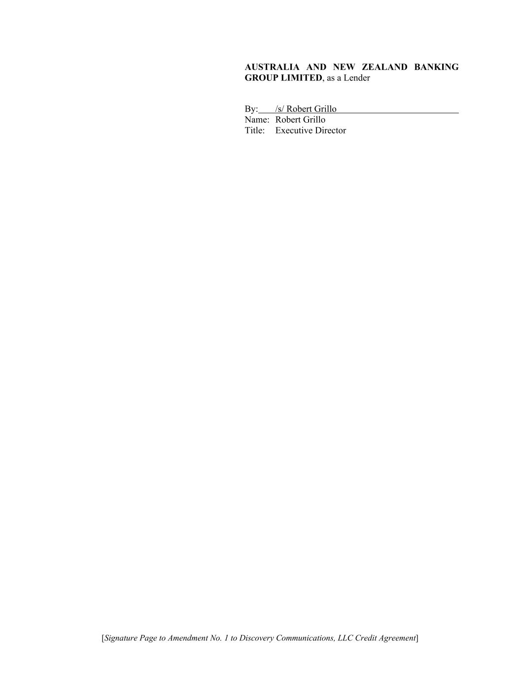 [Signature Page to Amendment No. 1 to Discovery Communications, LLC Credit Agreement] AUSTRALIA AND NEW ZEALAND BANKING GROUP LIMITED, as a Lender By: /s/ Robert Grillo Name: Robert Grillo Title: Executive Director