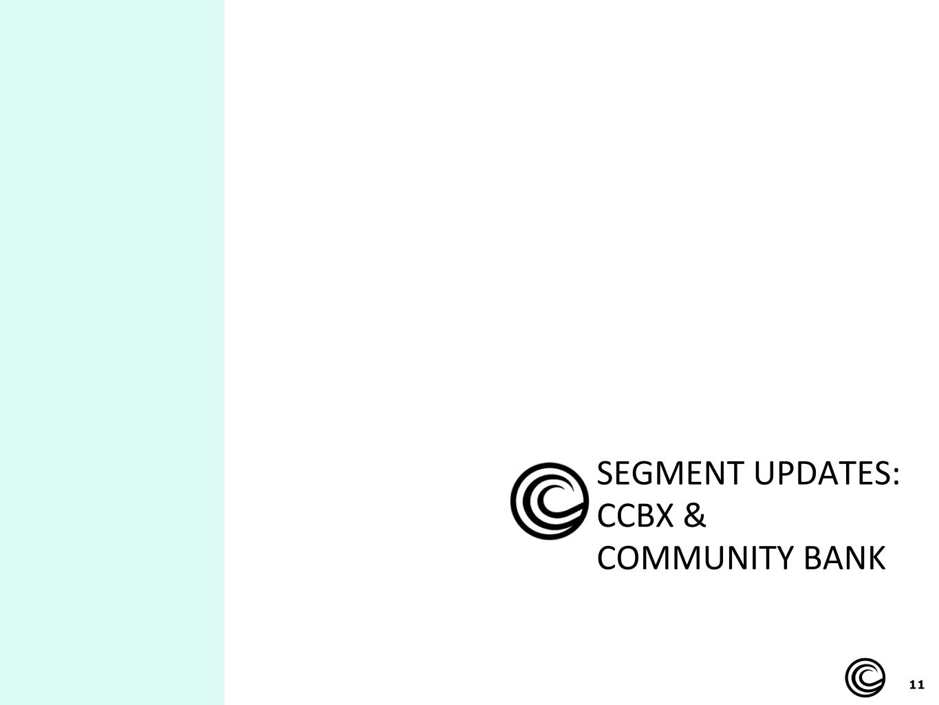 11 SEGMENT UPDATES: CCBX & COMMUNITY BANK