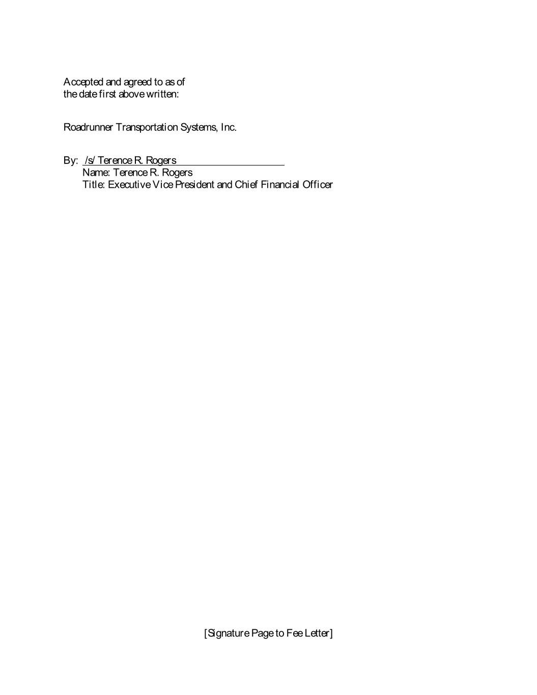 Accepted and agreed to as of the date first above written: Roadrunner Transportation Systems, Inc. By: /s/ Terence R. Rogers Name: Terence R. Rogers Title: Executive Vice President and Chief Financial Officer [Signature Page to Fee Letter]