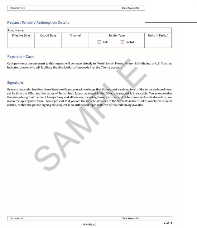 Should you wish to tender your Units or a portion of your Units for purchase by the Fund during this tender offer period, please contact your Financial Advisor (“FA”) who will enter the order and provide you with a customized Tender Offer Form for your account. Contained in this Offer kit is a sample Tender Offer Form which is for your reference only.