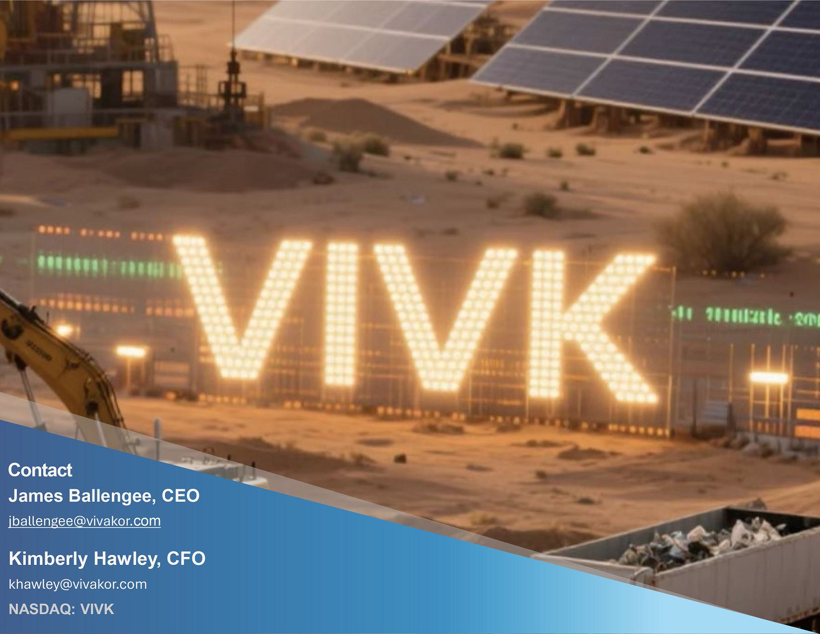 C on t act Jame s B a ll e ng ee , C EO j b a ll en g ee@ v i v a k o r . c om K i m b e r l y Ha w l e y , C F O k h a w l e y@ vi v a k o r . c o m N A S D A Q: V I VK