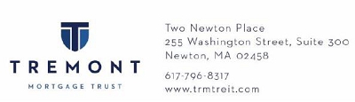 Tremont Mortgage Trust (Nasdaq: TRMT) is a real estate finance company that originates and invests in first mortgage loans secured by middle market and transitional commercial real estate. TRMT is managed by an affiliate of The RMR Group Inc. (Nasdaq: RMR). Substantially all of RMR’s business is conducted by its majority owned subsidiary, The RMR Group LLC, which is an alternative asset management company with $32 billion in assets under management and more than 35 years of institutional experience in buying, selling, financing and operating commercial real estate. For more information about TRMT, please visit www.trmtreit.com.