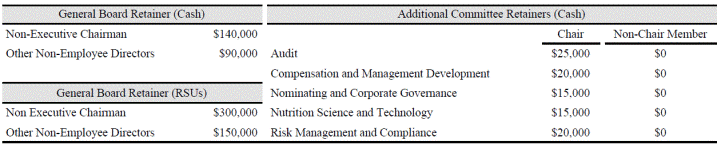 The standing committees of the Board are the Audit Committee, the Compensation and Management Development Committee, the Nominating and Corporate Governance Committee, the Nutrition Science and Technology Committee and the Risk Management and Compliance Committee. The members of each committee are appointed by the Board and serve until their successors are elected and qualified, unless they are earlier removed or resign.
