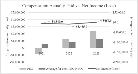 Compensation Actually Paid and Net Loss. As demonstrated by the following graph, the amount of compensation actually paid to our NEOs increased over the three year period presented in the chart below, and our net income increased as well. The overall increase in compensation actually paid to our NEOs is a result of the overall increase in our stock price over the period presented, which increased the compensation actually paid to our NEOs irrespective of our net income (loss) during each year.