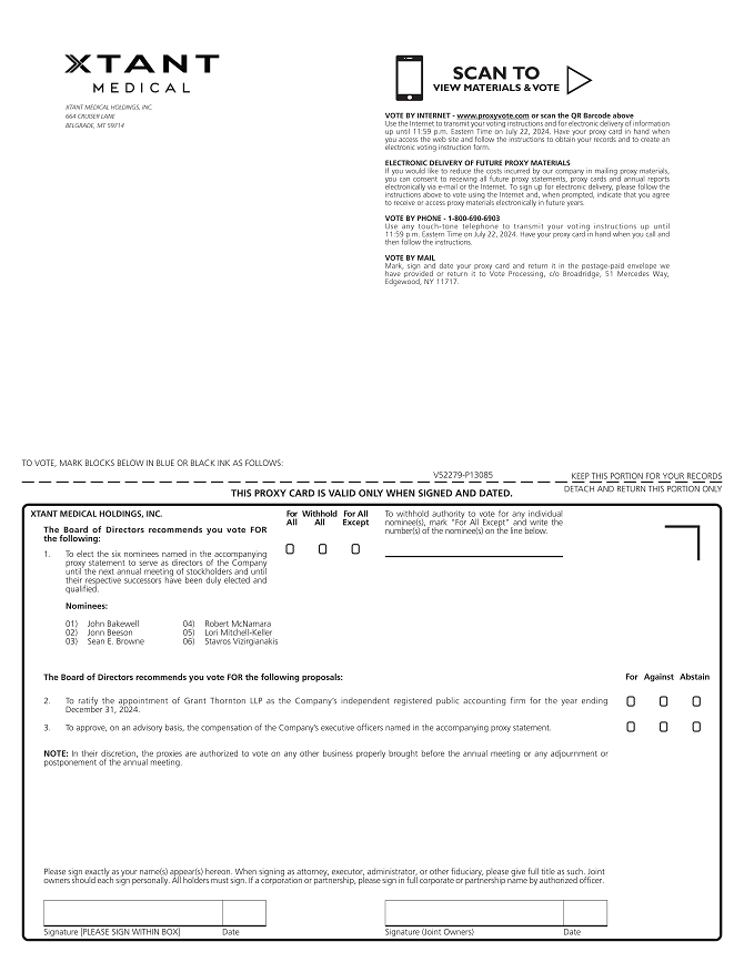 Important Notice Regarding the Availability of Proxy Materials for the Annual Meeting to be Held on July 23, 2024: The proxy statement, along with our Annual Report on Form 10-K for the fiscal year ended December 31, 2023 are available at www.xtantmedical.com (click “Investors” and “SEC Filings”).