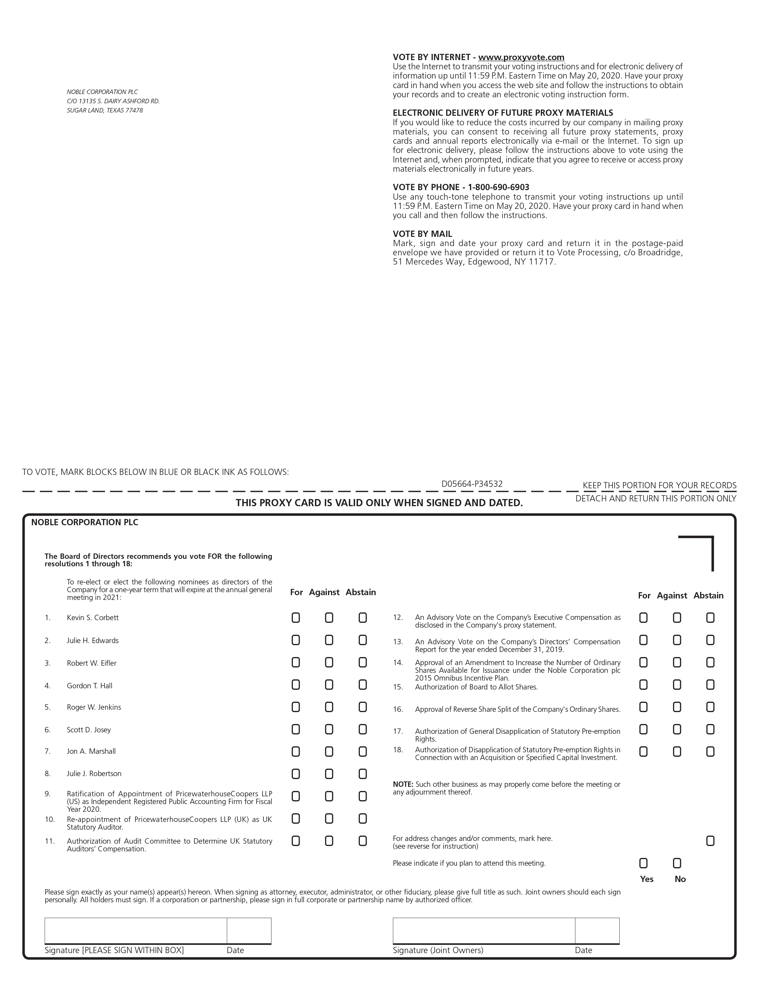 A8 2020 Proxy Statement Noble Corporation plc