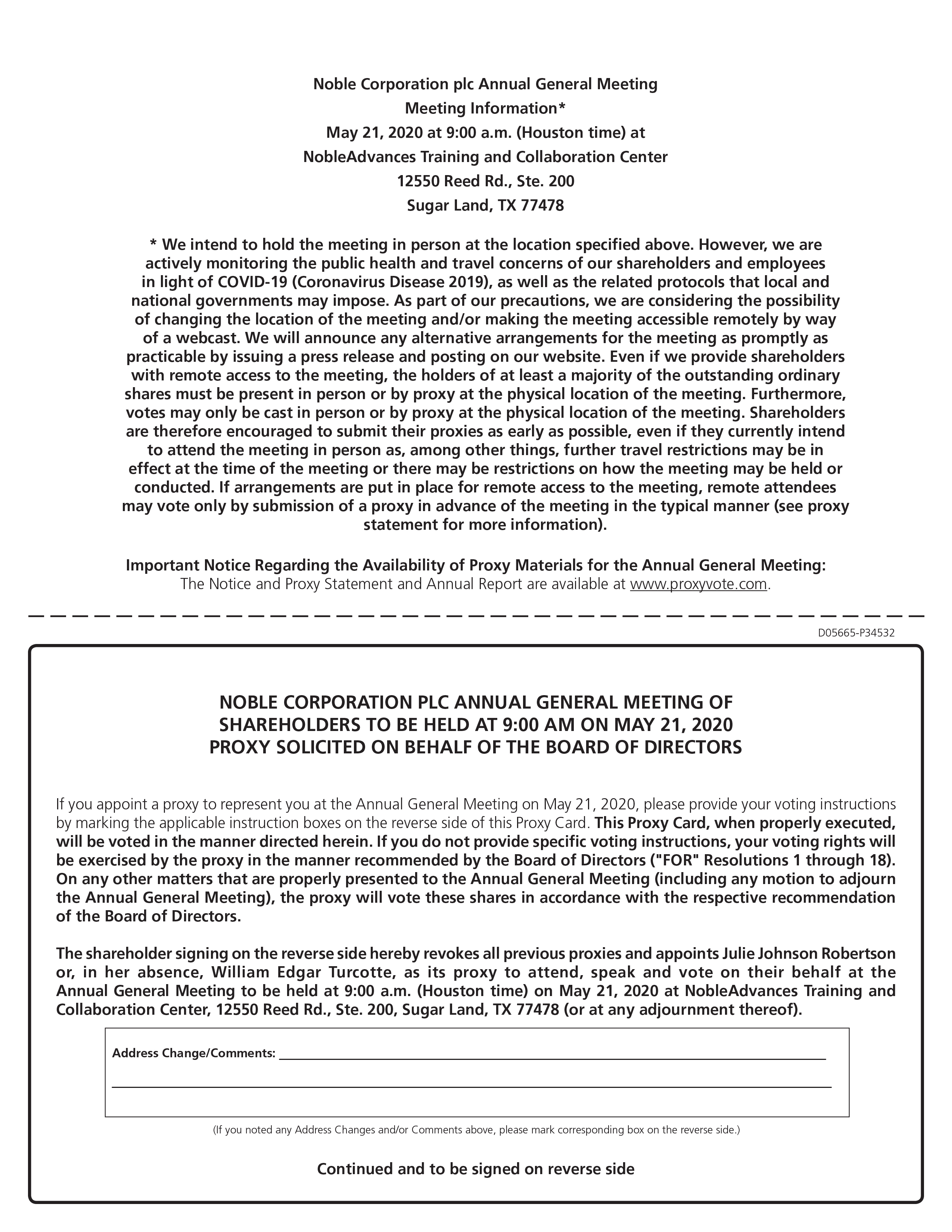 A10 2020 Proxy Statement Noble Corporation plc