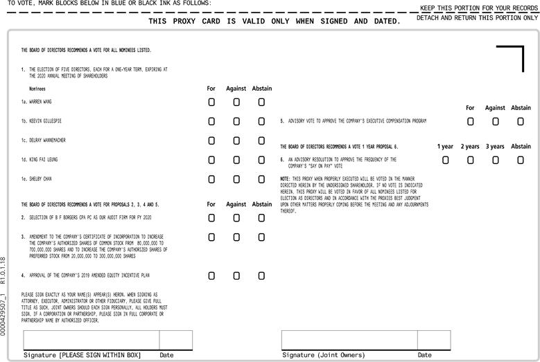WHETHER OR NOT YOU PLAN TO ATTEND OUR 2018-2019 ANNUAL MEETING OF STOCKHOLDERS, YOUR VOTE IS IMPORTANT. PLEASE FOLLOW THE INSTRUCTIONS IN THE PROXY MATERIALS TO VOTE YOUR PROXY VIA MAIL OR EMAIL AND PROMPTLY COMPLETE, EXECUTE AND RETURN THE PROXY CARD BY FOLLOWING THE INSTRUCTIONS ON THE PROXY CARD. IF YOU ATTEND OUR 2018-2019 ANNUAL MEETING OF STOCKHOLDERS, YOU MAY REVOKE YOUR PROXY AND VOTE IN PERSON IF YOU SO DESIRE.