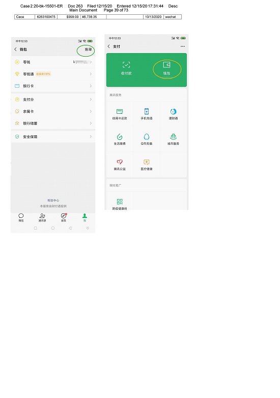 Cece 6263100475 $999.00 ¥6,738.35 10/13/2020 wechat Case 2:20 - bk - 15501 - ER Doc 263 Filed 12/15/20 Entered 12/15/20 17:31:44 Desc Main Document Page 39 of 73
