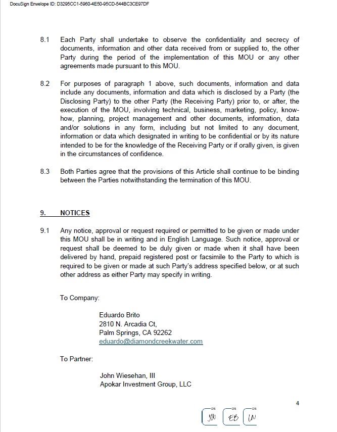 This letter will serve to memorialize our oral agreement relating to the MOU between our companies. Specifically, it is our agreement that, effective as of July 1, 2024, all of the terms and conditions contained in the MOU shall, for all purposes, become the binding agreement between our companies with respect to the subject matter of the MOU.