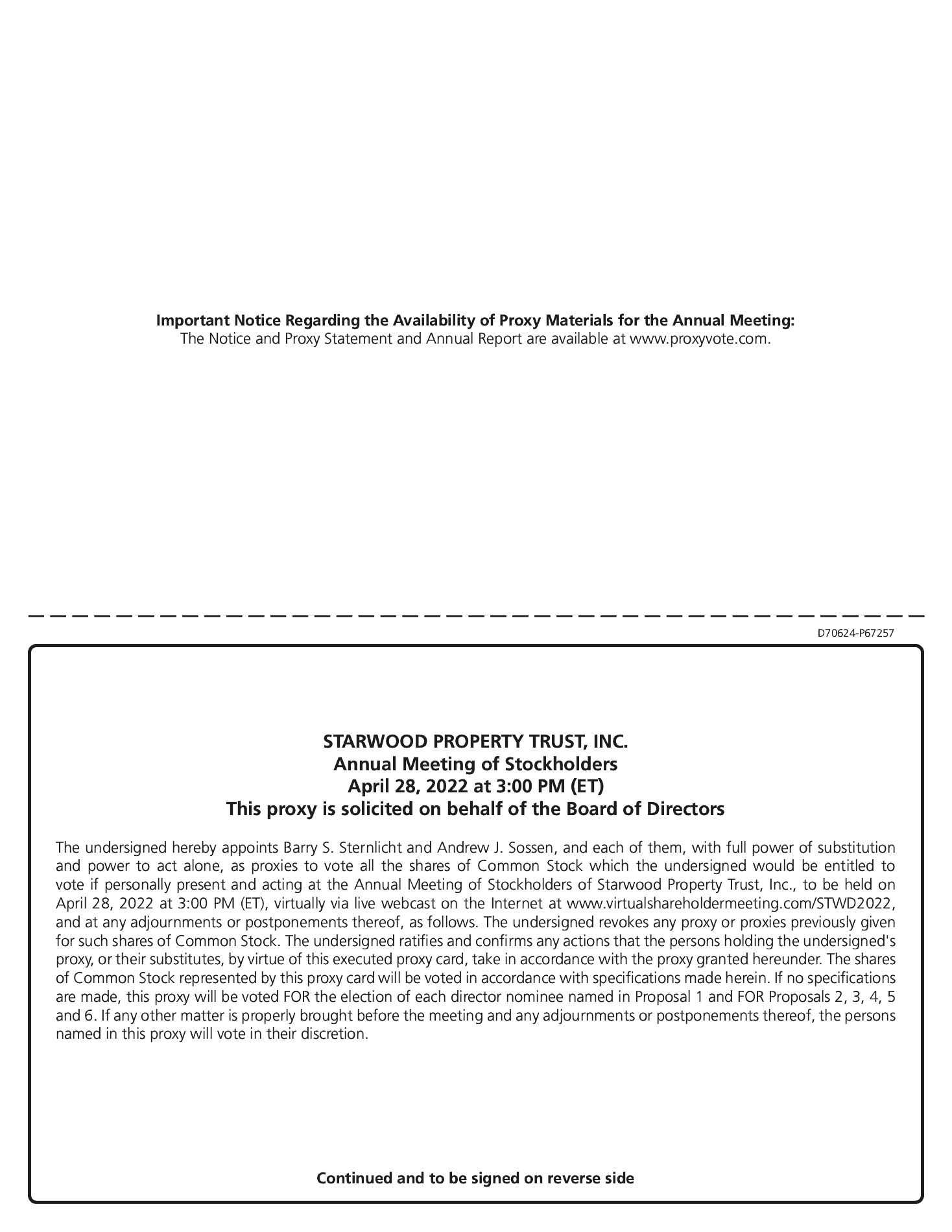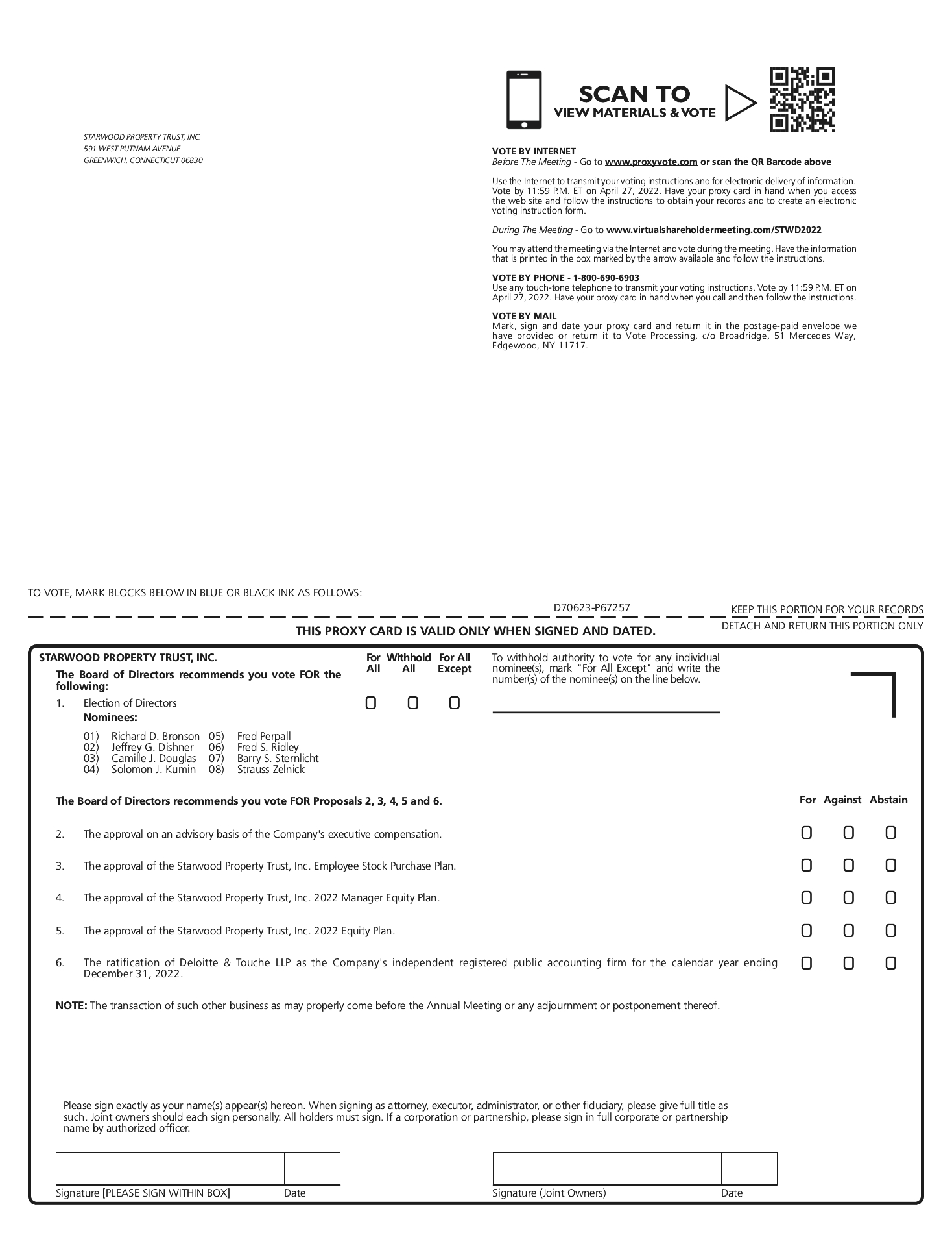 APPROVAL OF THE STARWOOD PROPERTY TRUST, INC. 2022 EQUITY PLAN