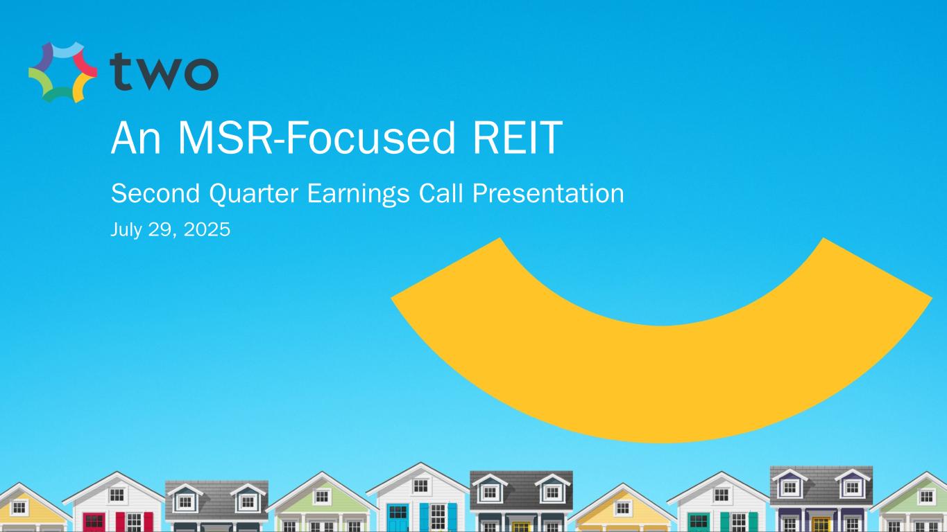 PAGE 11 - Agency RMBS Investment Landscape 1. Source: J.P. Morgan DataQuery. Data is model-based and represents universal mortgage-backed securities (UMBS) generic TBA spreads as of the dates noted. In 2023, J.P. Morgan updated their model affecting only 2023 data. 2. Spreads produced using prepayment speeds generated with The Yield Book® Software using internally calibrated prepayment dials. Data as of June 30, 2025. ZV Spread stands for zero volatility spread. PAGE 12 - Agency RMBS Portfolio 1. Specified pools include securities with implicit or explicit prepayment protection, including lower loan balances (securities collateralized by loans less than or equal to $300K of initial principal balance), higher LTVs (securities collateralized by loans with greater than or equal to 80% LTV), certain geographic concentrations, loans secured by investor-owned properties, and lower FICO scores, as well as securities without such protection, including large bank-serviced and others. 2. Represents UMBS generic TBA performance during the quarter. 3. Specified pool performance excludes (1) certain coupons in which we were not invested for the full duration of the quarter and (2) certain coupons with de minimis balances. 4. Specified pool market value by coupon as of June 30, 2025. 5. Three-month prepayment speeds of delivered TBA contracts; average of J.P. Morgan, Bank of America, and Citi data. PAGE 13 - MSR Investment Landscape 1. Source: RiskSpan and TWO’s internal estimates as of June 30, 2025. 2. TH MSR 30-year fixed-rate UPB as of June 30, 2025 Factor Date; Freddie Mac’s Primary Mortgage Market Survey (PMMS) as of June 30, 2025. MSR portfolio based on the prior month-end's principal balance of the loans underlying the company's MSR, increased for current month purchases and excluding unsettled MSR on loans for which the company is the named servicer as well as MSR on loans recently settled for which transfer to the company is not yet complete. PAGE 14 - MSR Portfolio 1. MSR portfolio based on the prior month-end's principal balance of the loans underlying the company's MSR, increased for current month purchases. Portfolio metrics, other than fair value and UPB, represent averages weighted by UPB. 2. FICO represents a mortgage industry accepted credit score of a borrower. 3. MSR portfolio based on the prior month-end's principal balance of the loans underlying the company's MSR, increased for current month purchases and excluding unsettled MSR on loans for which the company is the named servicer as well as MSR on loans recently settled for which transfer to the company is not yet complete. 4. Three-month prepayment speeds of delivered TBA contracts; average of J.P. Morgan, Bank of America, and Citi data. PAGE 15 - Return Potential and Outlook 1. Capital allocated represents management’s internal allocation. Certain financing balances and associated interest expenses are allocated between investments based on management’s assessment of leverage ratios and required capital or liquidity to support the investment. 2. Market return estimates reflect static assumptions using quarter-end spreads and market data. 3. MSR balances are reduced by $10.0 billion UPB relative to the quarter end position to reflect anticipated portfolio rebalancing as a result of the loss contingency accrual associated with the company’s ongoing litigation with PRCM Advisers LLC. 4. Includes Agency pools and TBA positions. TBA contracts accounted for as derivative instruments in accordance with GAAP. 5. Estimated return on invested capital reflects static return assumptions using quarter-end portfolio valuations. 6. Total expenses includes operating expenses and tax expenses within the company’s taxable REIT subsidiaries. 7. Preferred equity coupon represents the 5-year yield along the forward curve to account for floating rate resets. 8. Prospective quarterly static return estimate per basic common share reflects portfolio performance expectations given current market conditions and represents the comprehensive income attributable to common stockholders (net of dividends on preferred stock). 31 End Notes (continued)