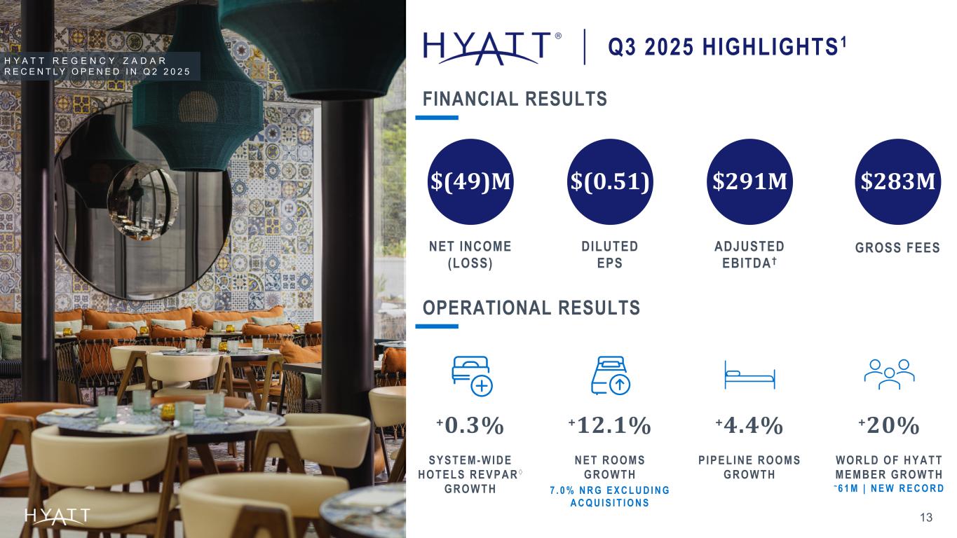 C O N F I D E N T I A L A N D P R O P R I E T A R Y | H y a t t a n d r e l a t e d m a r k s a r e t r a d e m a r k s o f H y a t t C o r p o r a t i o n o r i t s a f f i l i a t e s . © 2 0 2 5 H y a t t C o r p o r a t i o n . A l l r i g h t s r e s e r v e d . Investor Presentation Hyatt THIRD QUARTER 2025 P A R K H Y A T T J O H A N N E S B U R G N E W L Y O P E N E D Q 3 2 0 2 5 .2
