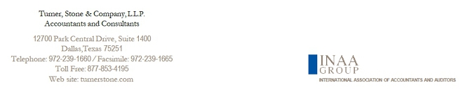 Our independent public accounting firm is Turner Stone & Company, L.L.P., Dallas, Texas, PCAOB Auditor ID 76.