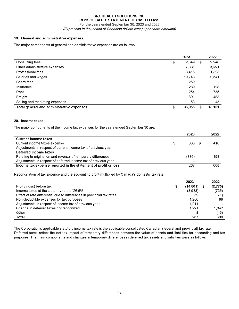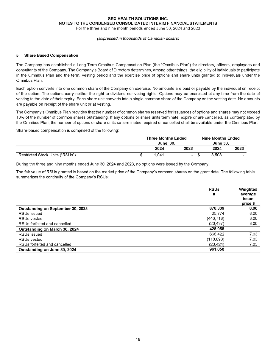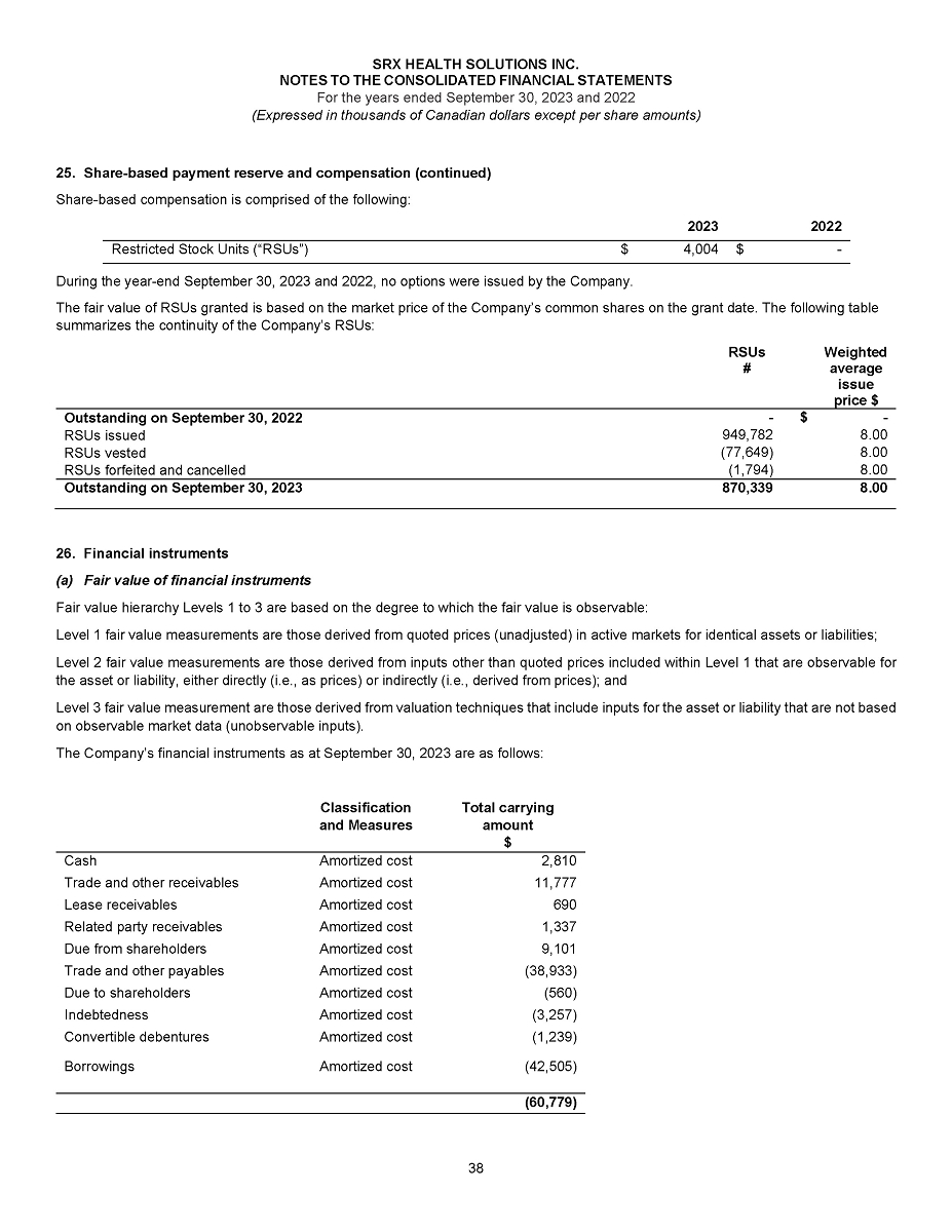 With respect to any forecasts, projections, estimates and/or budgets, we have assumed that they were reasonably prepared on a basis reflecting the best currently available estimates, assumptions and good faith judgments of the management of the Company and that such forecasts, projections, estimates and/or budgets were prepared or reviewed using the assumptions identified therein and that such assumptions are (or were at the time) reasonable in the circumstances. We express no opinion with respect to the forecasts, projections, budgets or the assumptions upon which they are based, although we note that the preparation of any future-oriented financial information involves the application of management’s subjective judgements about future conditions and is inherently subject to uncertainty. Actual results will likely be different from the results implied by the forecasts and any such differences could be material. We have not made any independent evaluation or appraisal of the assets or liabilities (contingent or otherwise) of the Company or SRX Health Solutions, Inc nor have we been furnished with any such evaluation or appraisal.