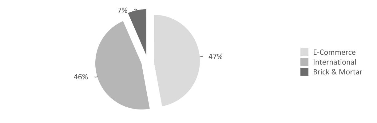 In 2024, we generated $42.4 million of gross sales and $35.0 million of net sales. By channel in 2024, Digital generated approximately $23.2 million of gross sales and $16.5 million of net sales, Brick & Mortar generated approximately $2.8 million of gross sales and $2.3 million of net sales and International generated approximately $16.4 million of gross sales and $16.2 million of net sales. The following chart provides a breakdown of our net sales by channel for the year ended December 31, 2024:
