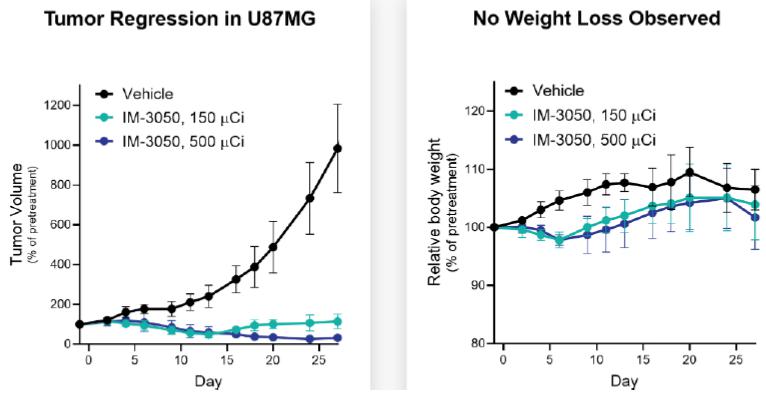 We are developing IM-3050, a FAP-targeted Lu-177 RLT development candidate for the treatment of solid tumors. FAP is expressed in approximately 75% of solid tumors. FAP is predominantly expressed by cancer-associated fibroblasts, the most common tumor stromal cell. IM-3050 is designed to deliver radioactive Lu-177 directly to FAP-expressing cells, where the bystander effect of the radiation may damage or kill nearby tumor cells. We believe this RLT approach could overcome the limitations, such as poor internalization and low expression on tumor cells, that make FAP an unsuitable target for ADCs. In vivo data show single dose antitumor activity and tolerability.