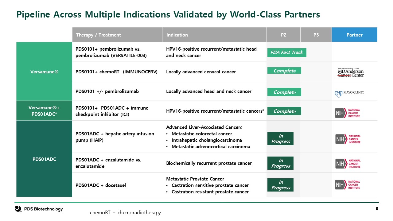 (Versamune® HPV), PDS01ADC, PDS0103 (Versamune® MUC1) and other Versamune® based product candidates; the future success of such trials; the successful implementation of the Company’s research and development programs and collaborations,
